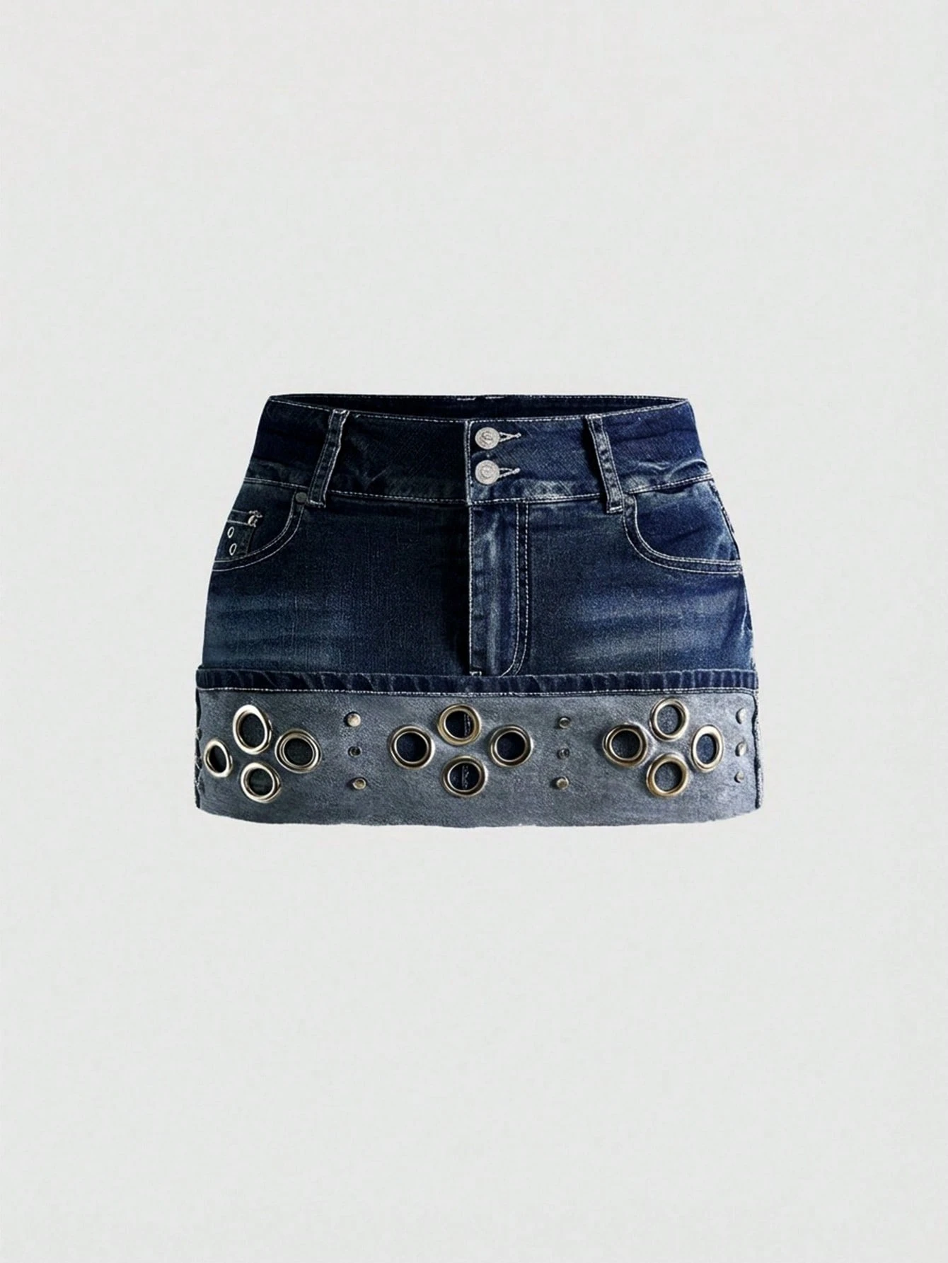 J-Fashion Minifalda de mezclilla de cintura baja con efecto metálico retro Y2K para mujeres