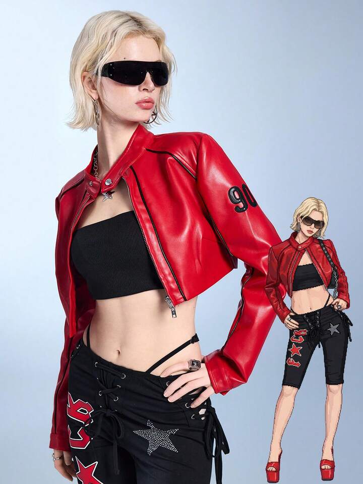J-Fashion Chaqueta de cuero corta de mujer Neon Knight Y2K