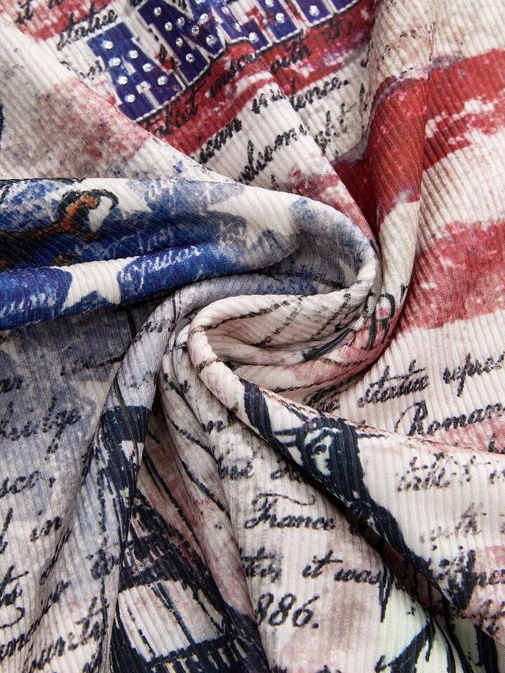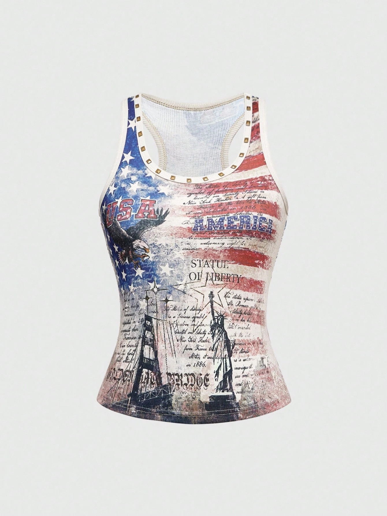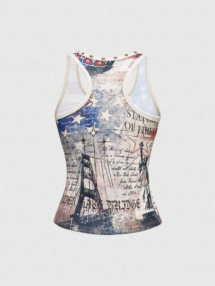J-Fashion Camiseta de tirantes para mujer con gráfico de bandera estadounidense, águila y texto en inglés, estilo retro Y2K