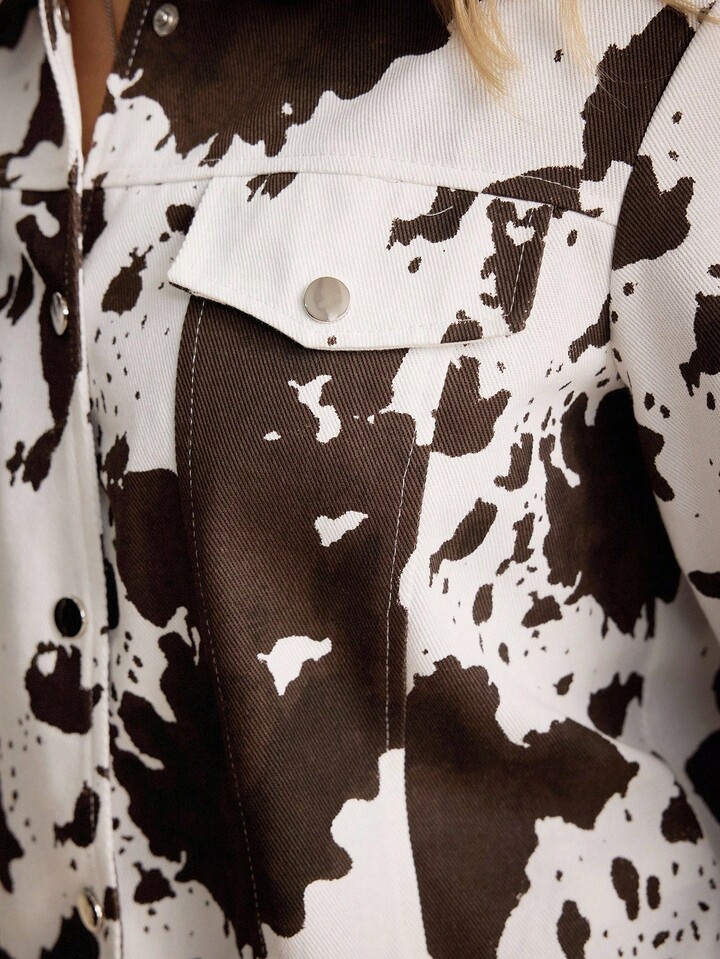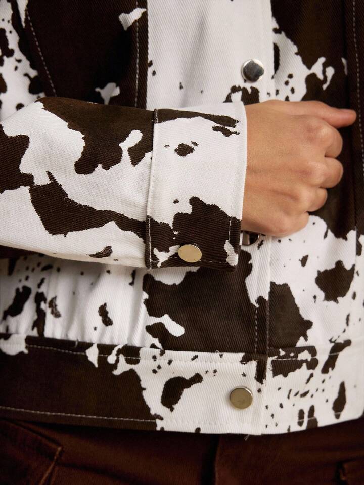 J-Fashion Chaqueta/abrigo de manga larga con estampado de vaca de patrón animal sexy retro Y2K para mujeres