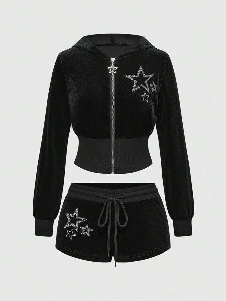 J-Fashion Conjunto de 2 piezas con estrella de rhinestone estilo Y2K para mujeres