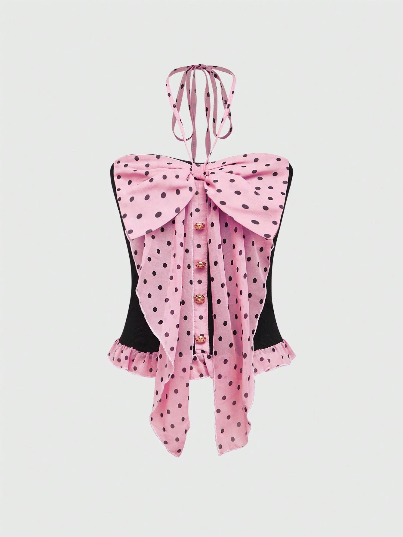 J-Fashion Top holgado de mujer con lazo y lunares de estilo Himekaji dulce Shibuya Gal de época Y2K, color rosa