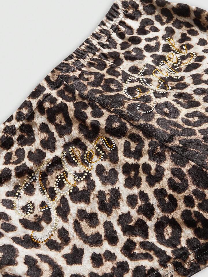 J-Fashion Pantalones cortos con estampado de leopardo de terciopelo de estilo Y2K, con cordones frontales, y decorados con cristales de estilo inglés, para mujer, para otoño/invierno