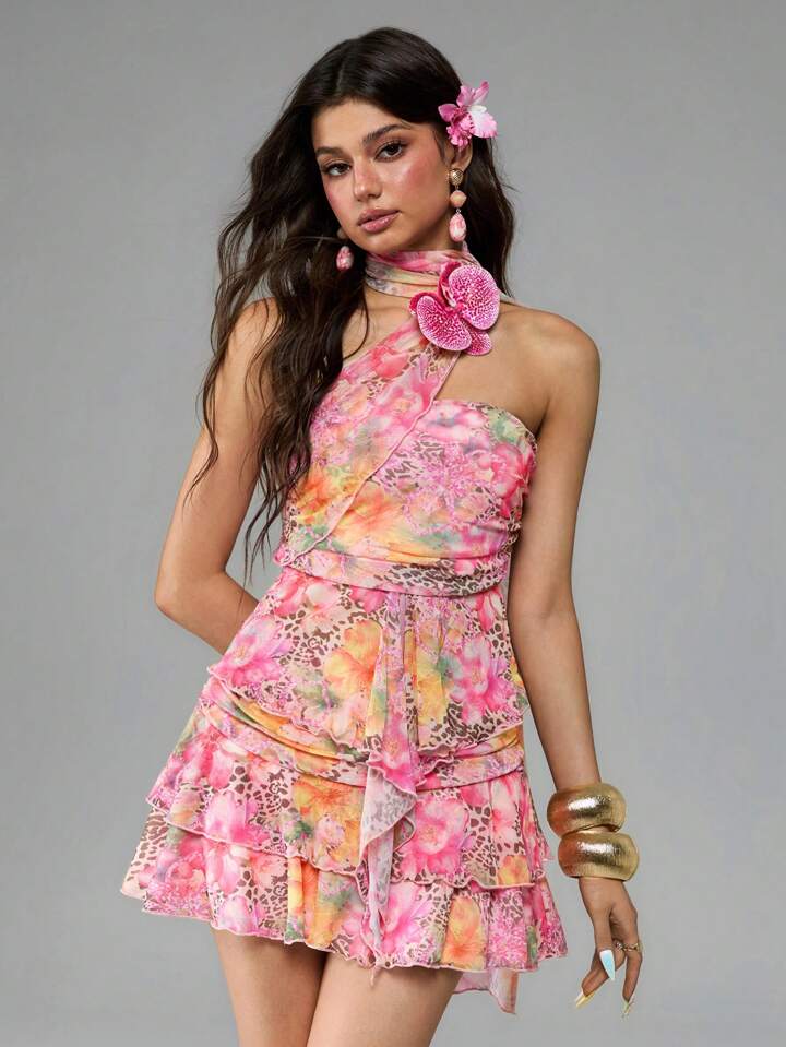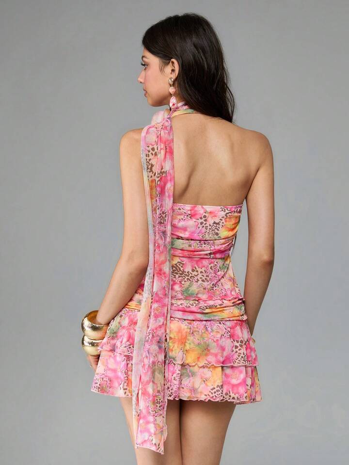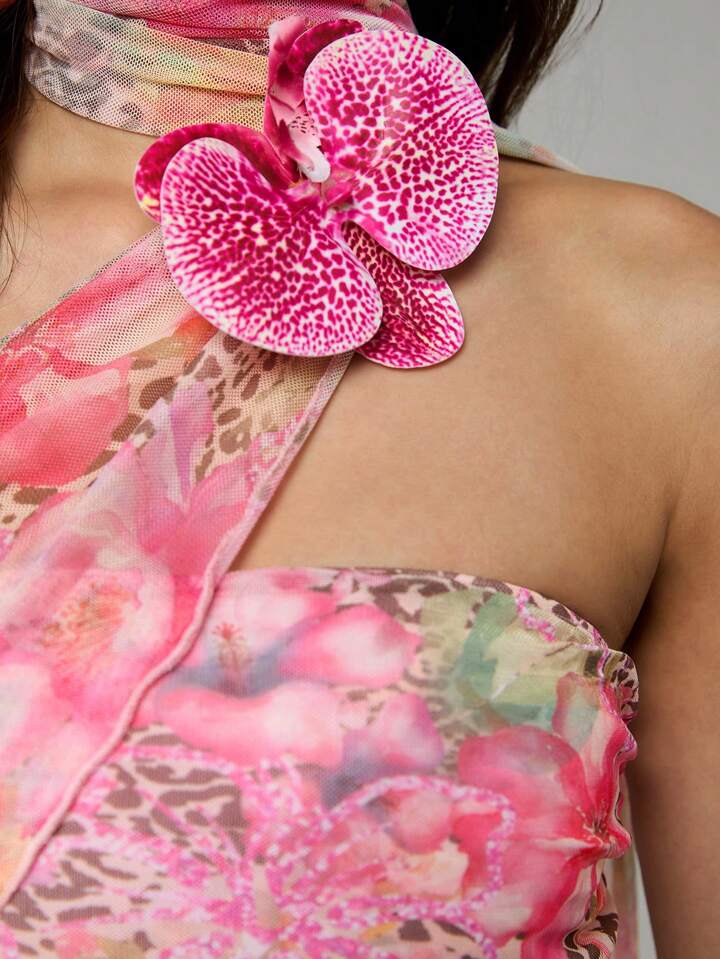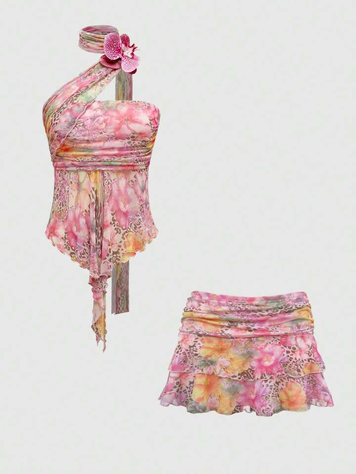 J-Fashion Conjunto de 2 piezas para mujer con top bandeau y pañuelo de malla desmontable con plisado lateral sexy, estilo vacaciones de la generación Y2K