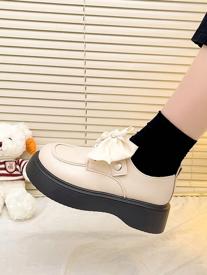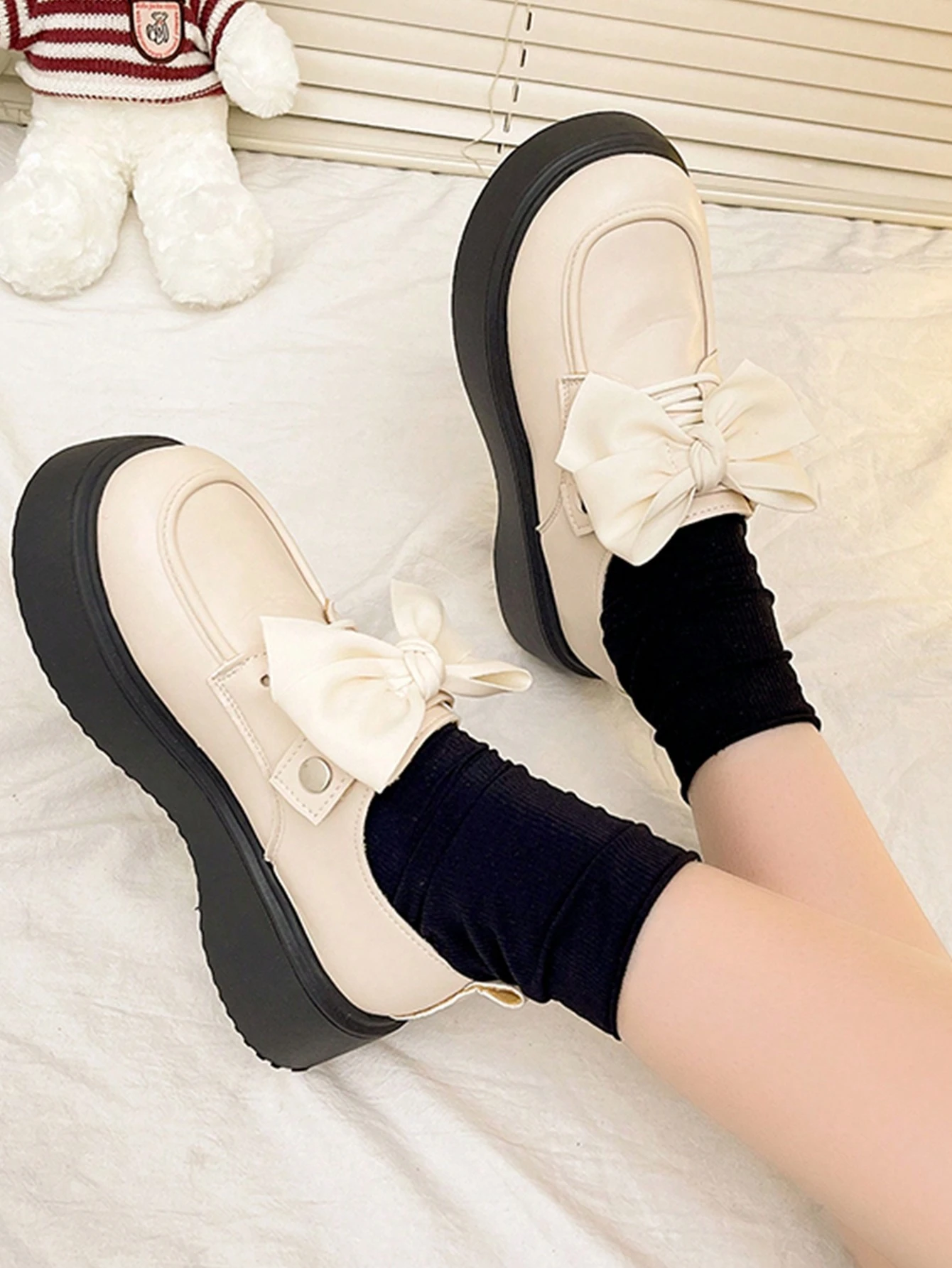 Zapatos Estilo Japonés De La Hermana Suave Cute Bowknot Para Mujeres, Zapatos Retro Mary Jane De Fondo Grueso
