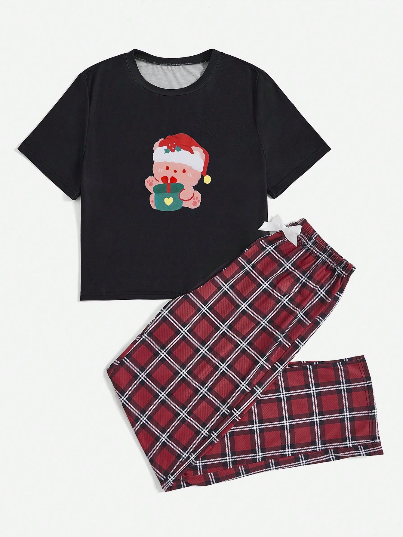 JullDiaz Conjunto de pijama Camiseta con estampado de Navidad & Pantalones de cuadros