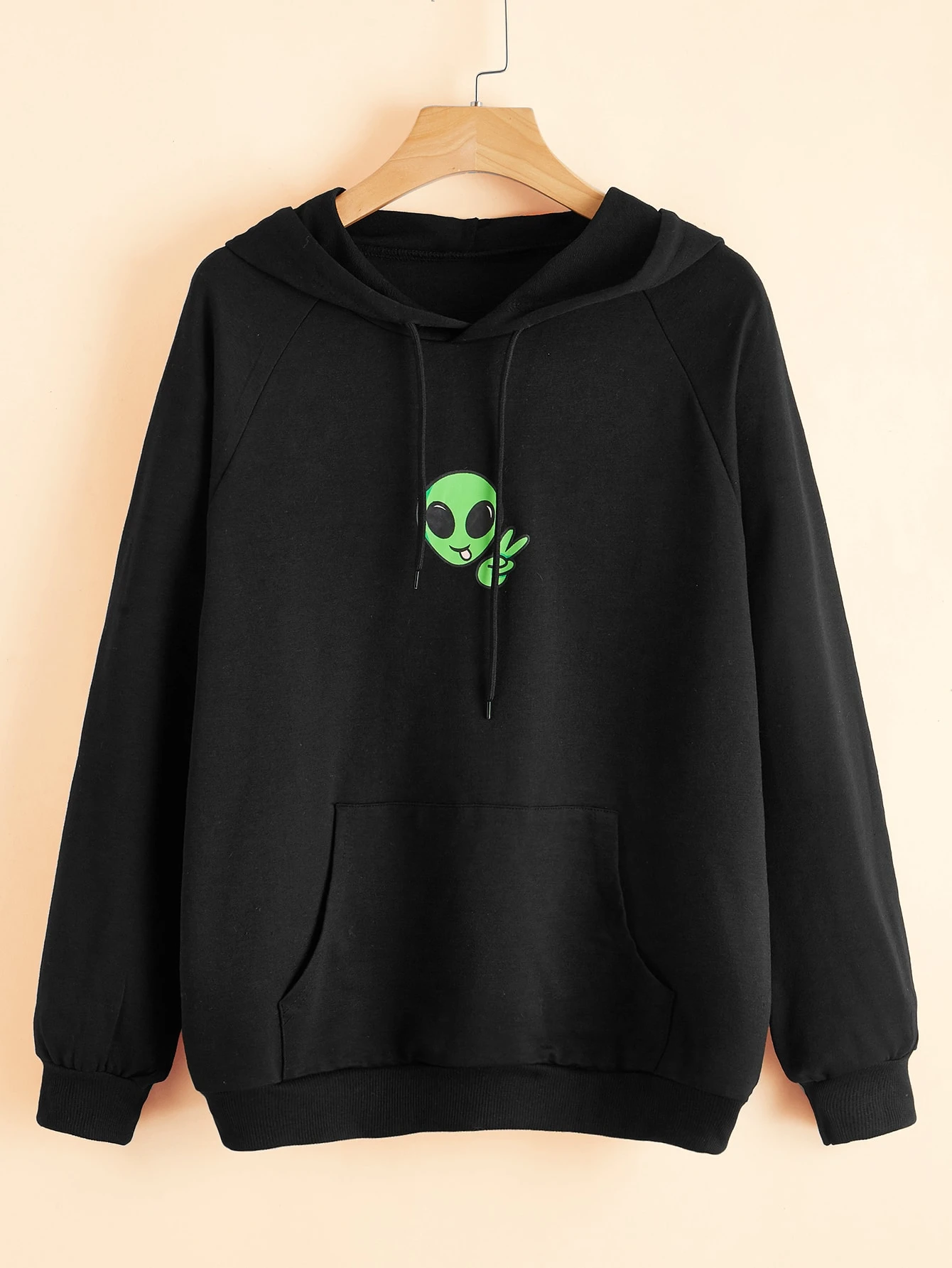 Capucha con estampado de extraterrestre con bolsillo de canguro
