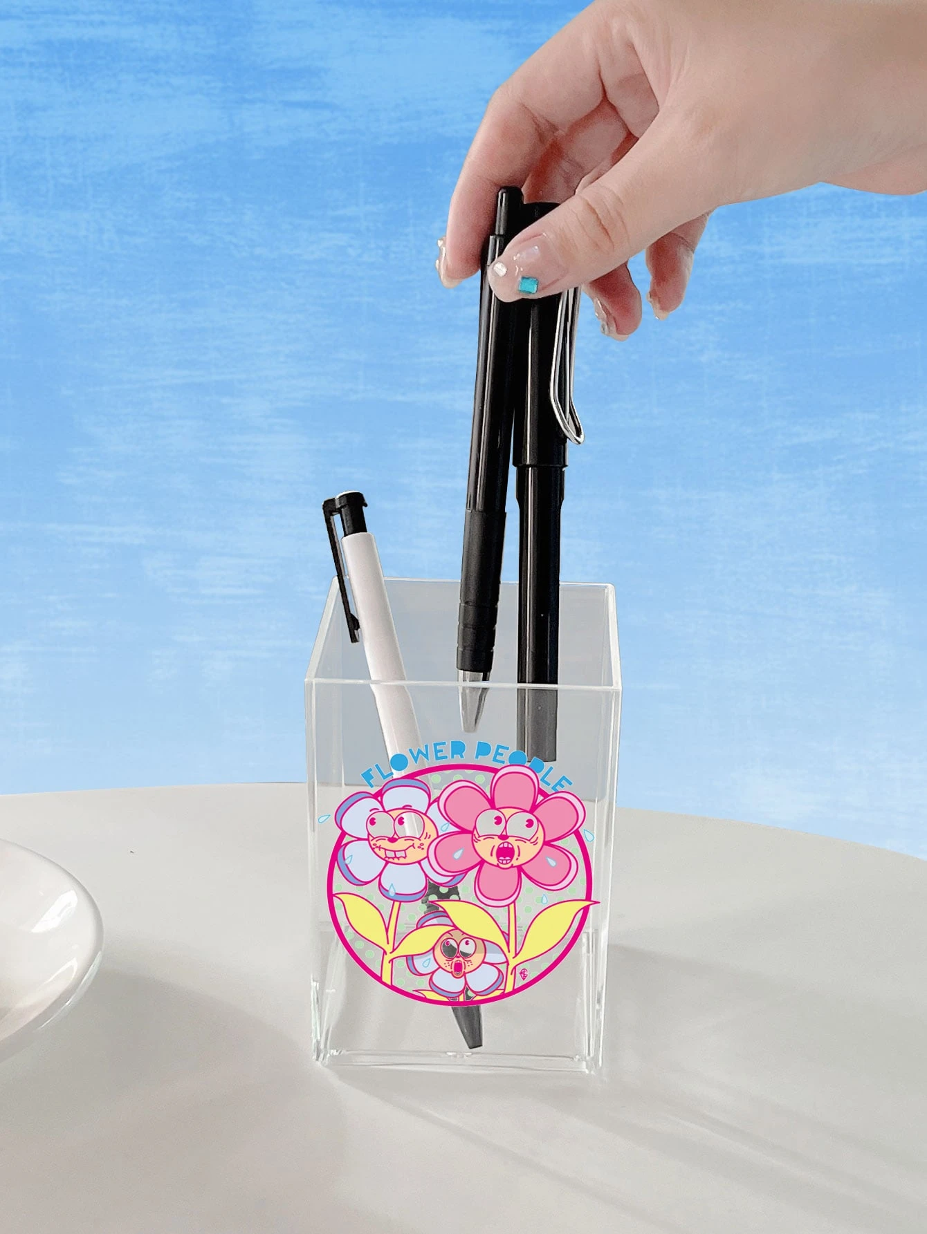 Kaori Hamura Long Bote para lápices con estampado de flor y letra