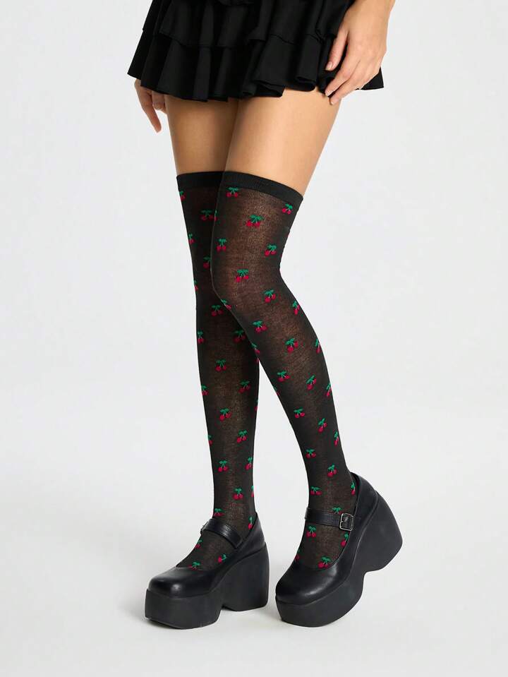 Kawaii 1 Par de Lindos Calcetines por Encima de la Rodilla de Color Cereza Oscuro