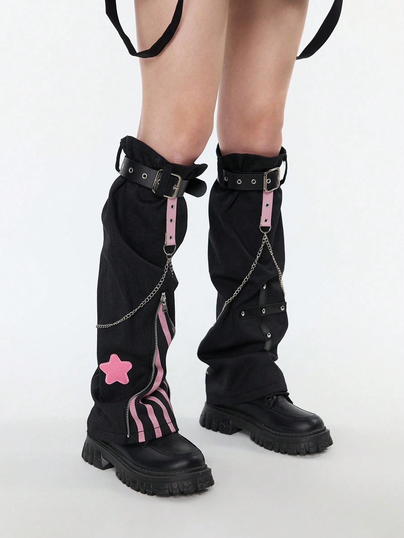 Kawaii 1 par de calentadores de piernas con diseño lindo de ciervos, calentadores de piernas gruesos y grandes con pompones esponjosos estilo Y2K, ajuste elegante, adecuados para uso diario, otoño/invierno, vacaciones y fiestas