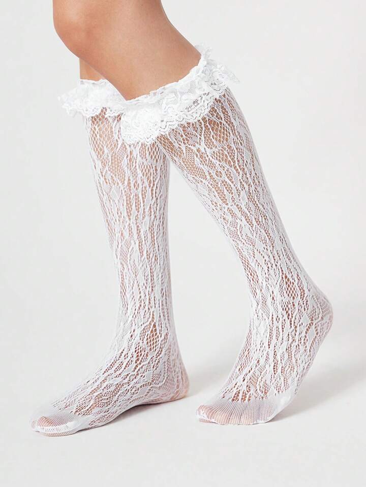 Kawaii 1 par de calcetines de media caña con patrón floral hueco, calcetines con ribete de encaje dulce, calcetines versátiles de estilo académico para mujer