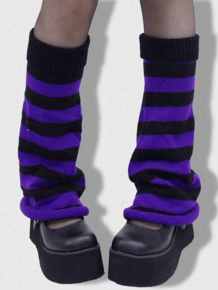 Kawaii 1 par de calentadores de piernas extra largos a rayas para mujer, cálidos