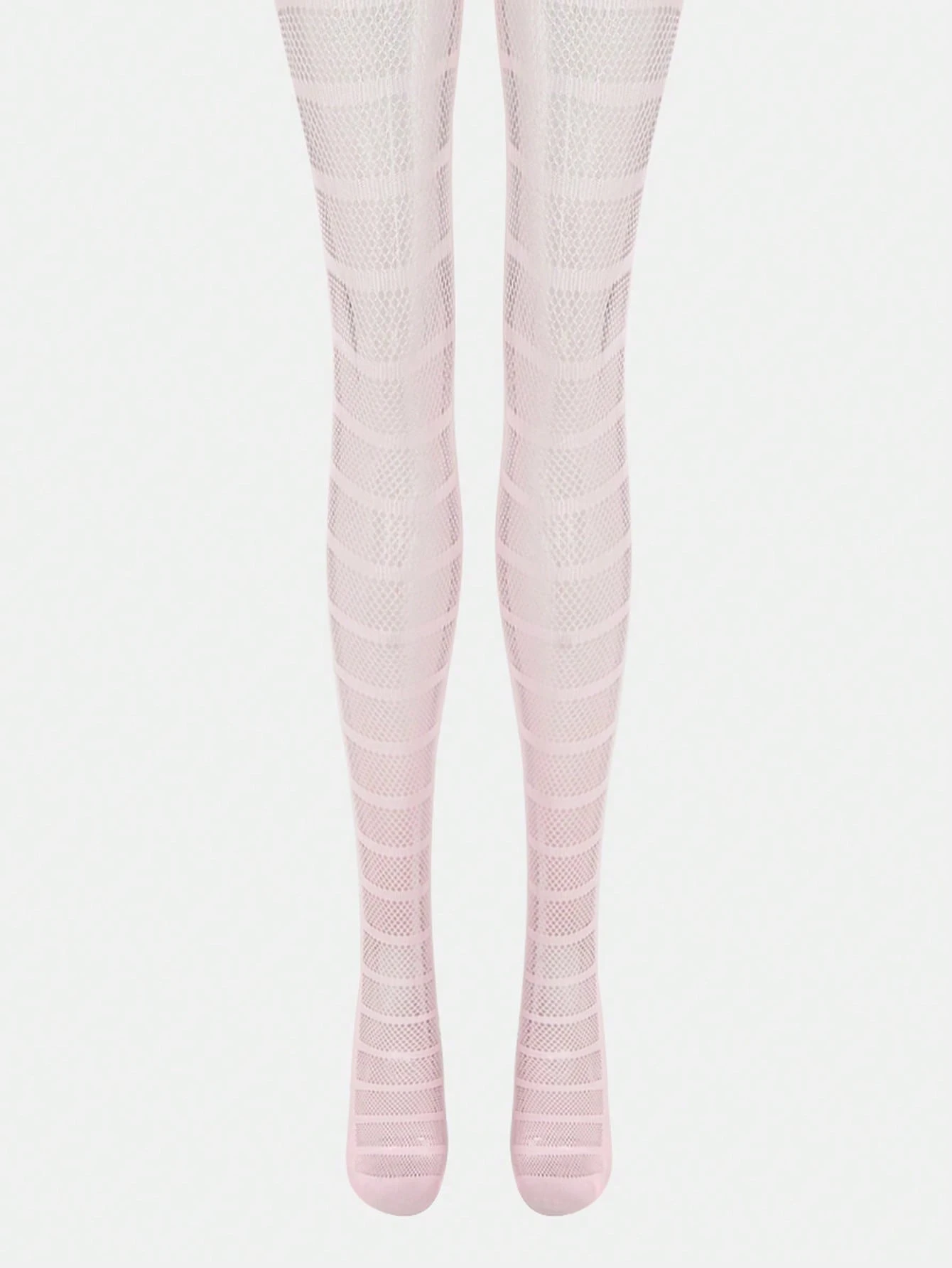 Kawaii 1 par de medias de red con rayas cruzadas sexy, medias de red con patrón geométrico retro, pantimedia transparente y elástica