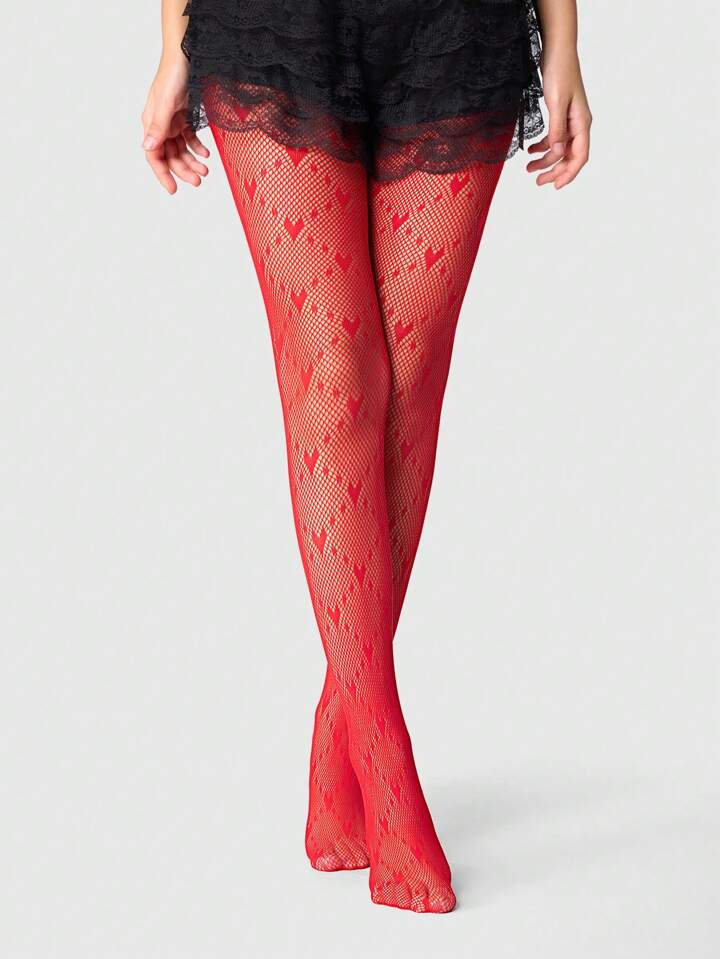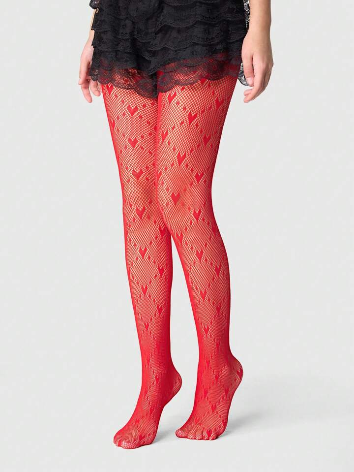 Kawaii 1 par de medias de rejilla con corazones huecos rojos y dulces