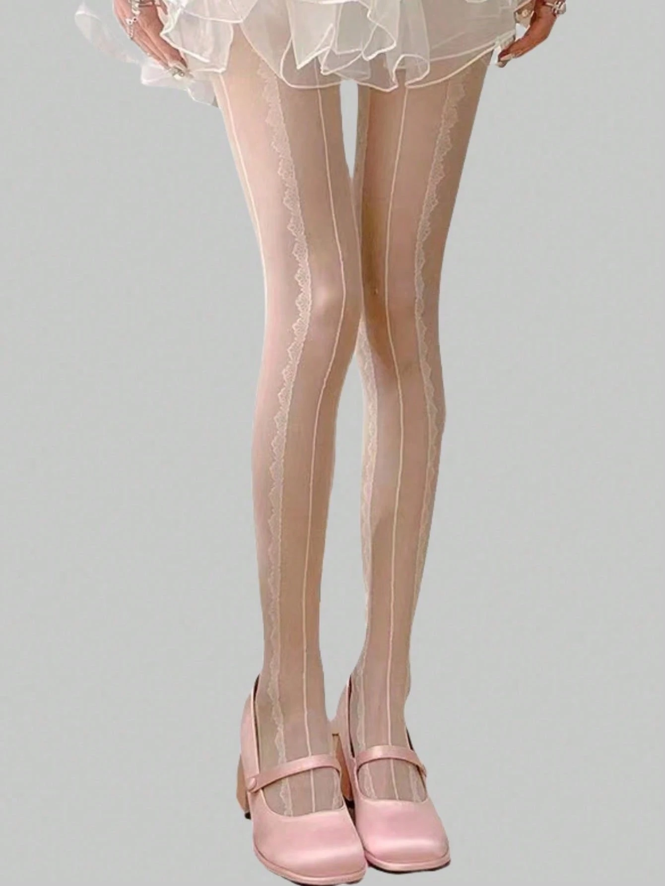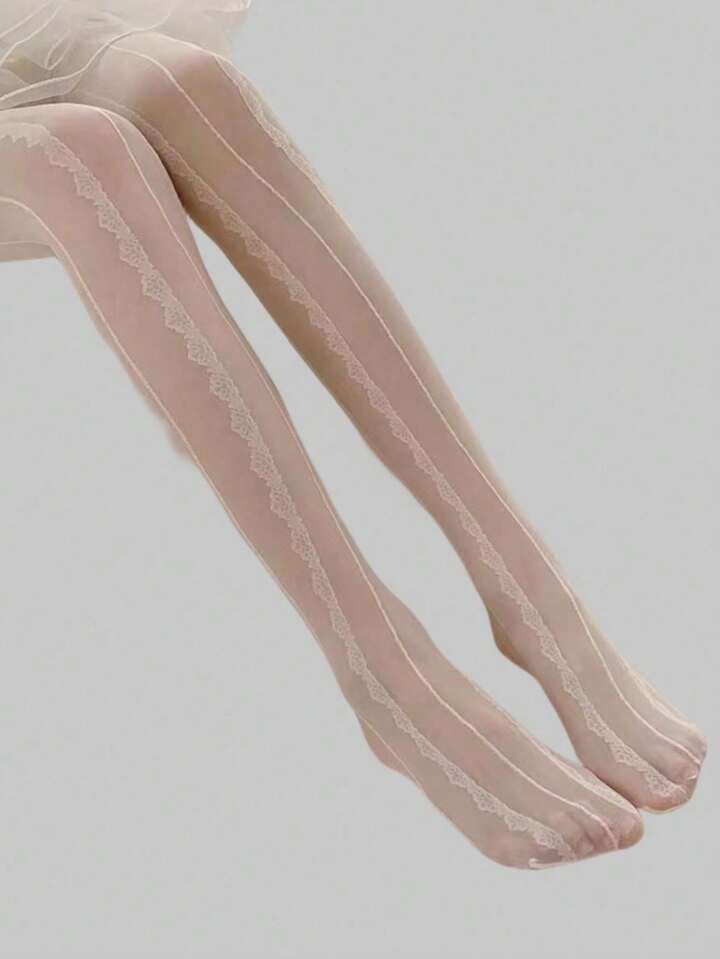 Kawaii 1 par de medias de encaje blanco sólido de la serie de té