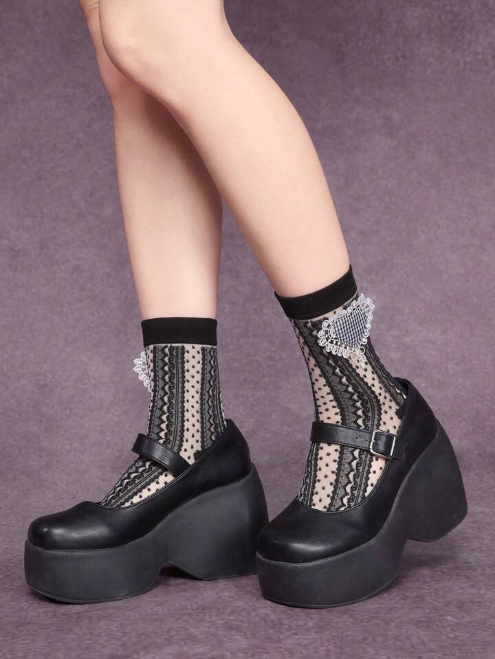 Kawaii 1 par de calcetines hasta el tobillo de mujer con un diseño elegante de corazones, cuadros, cristales, puntos y ondas, para todo el año