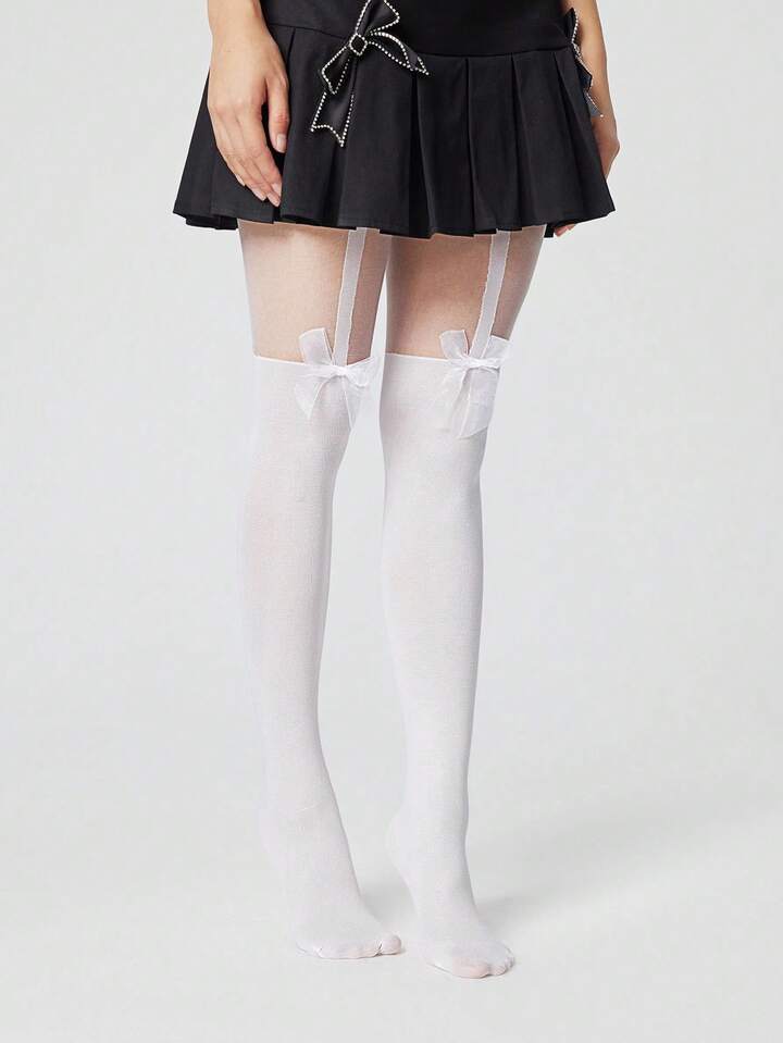 Kawaii 1 par de medias opacas de unicolor y estilo sencillo para mujeres, apropiadas para todas las estaciones