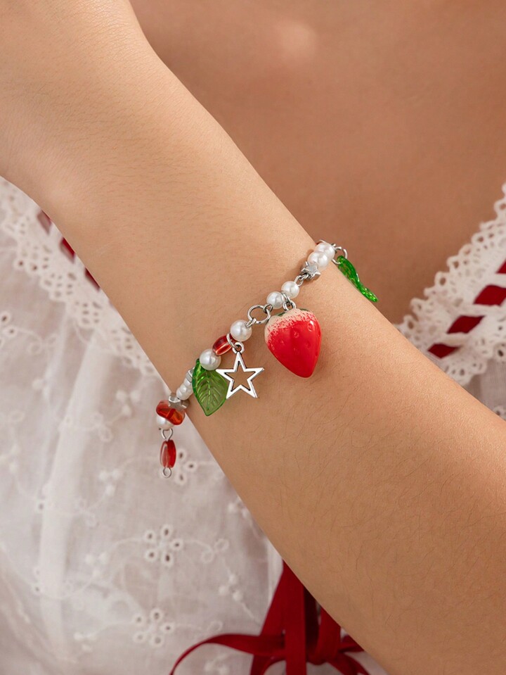 Kawaii 1 pieza Pulsera de cuentas con diseño de fresa dulce y fresco para mujeres