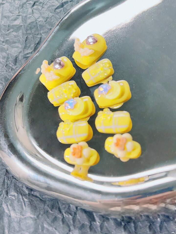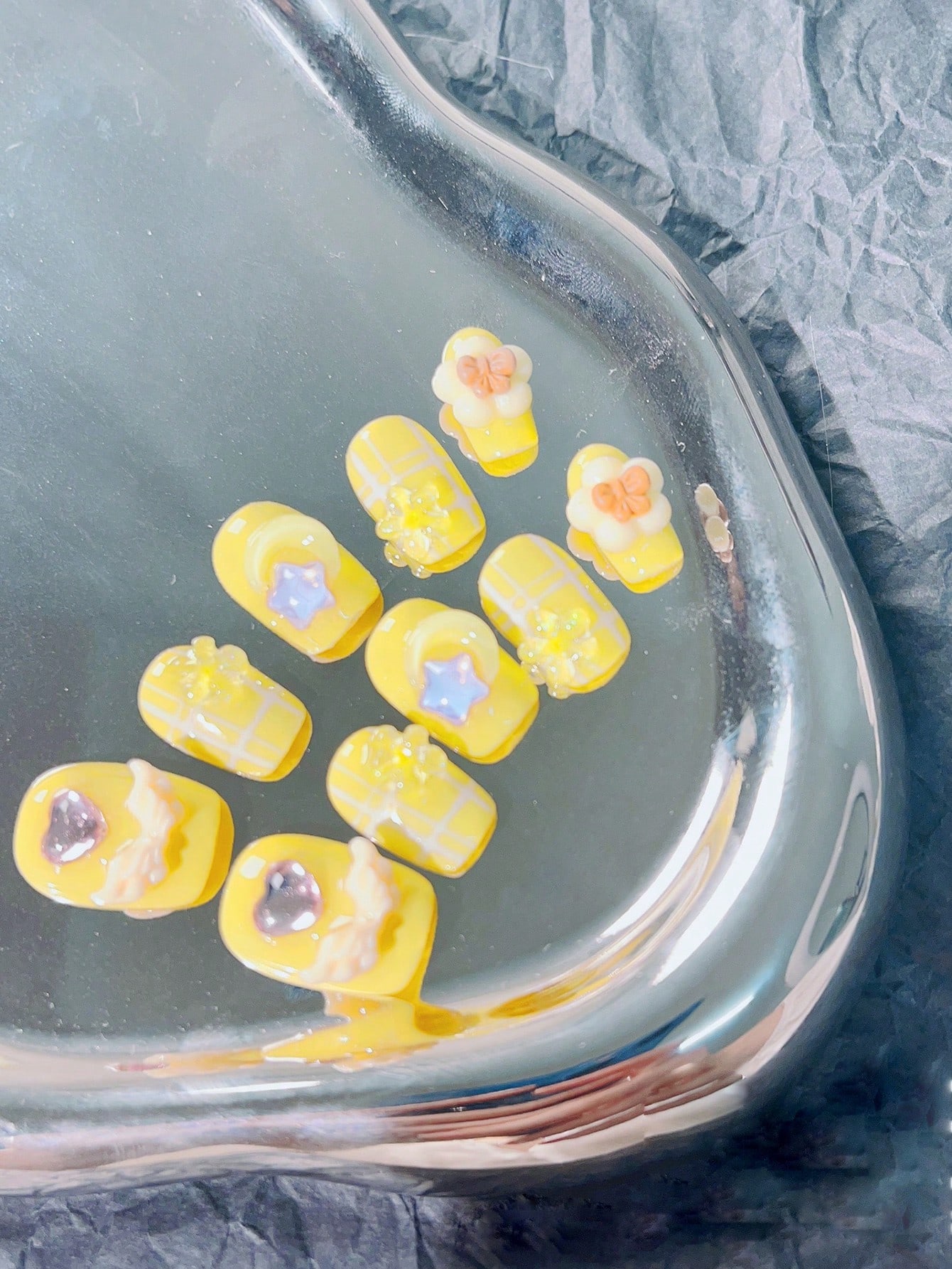 Kawaii 10 piezas corto ataúd con estrella & con diseño de lazo Uña postiza Kit