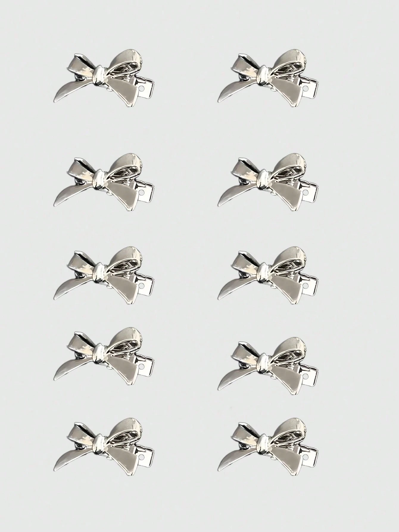 Kawaii 10 piezas de broches de metal plateado en forma de moño, pinzas lindas y miniatura, accesorios para el cabello de estilo delicado y dulce, versátiles, clips de garra para el cabello