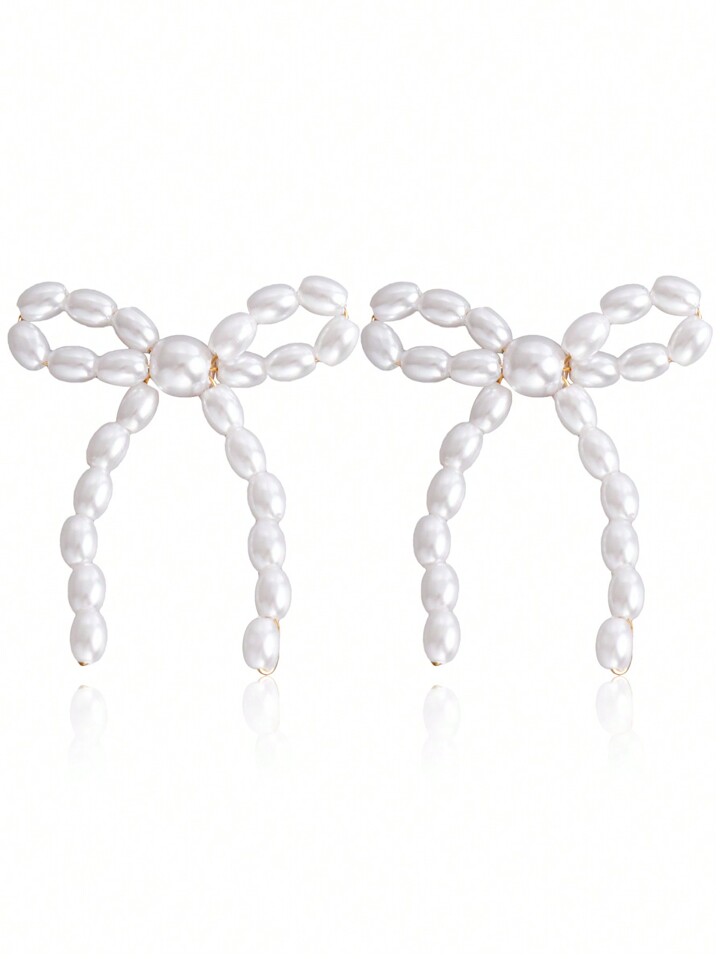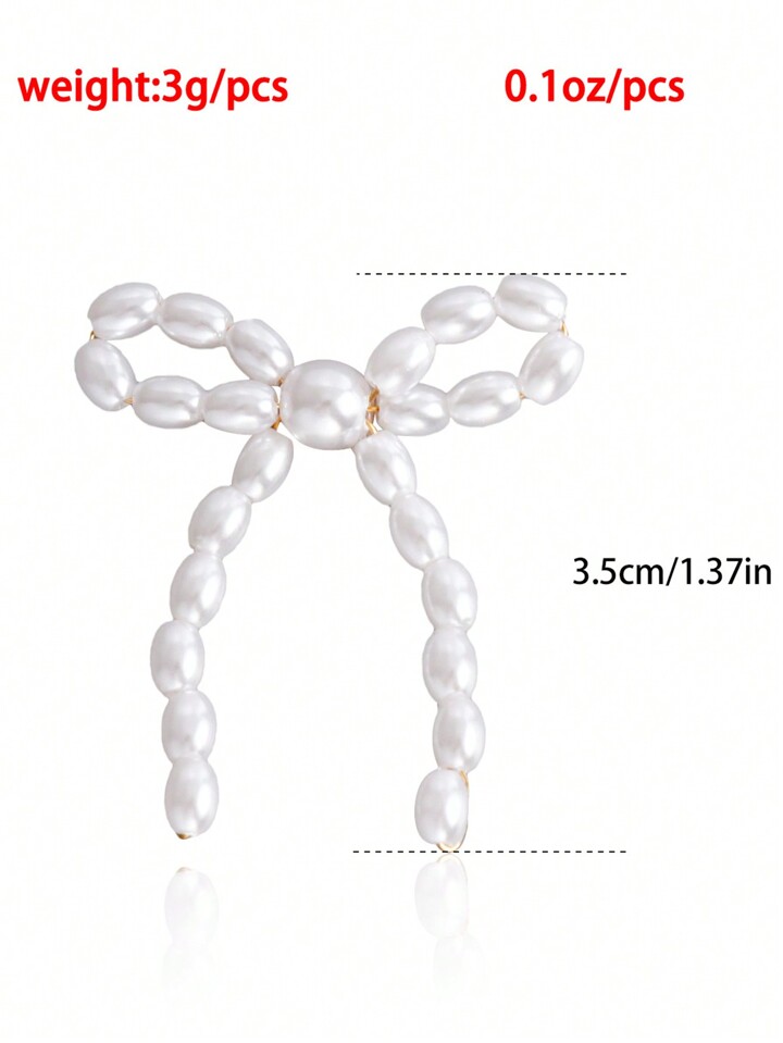 Kawaii 1 par de pendientes de perlas falsas con diseño de lazo elegante para mujer como regalo para citas