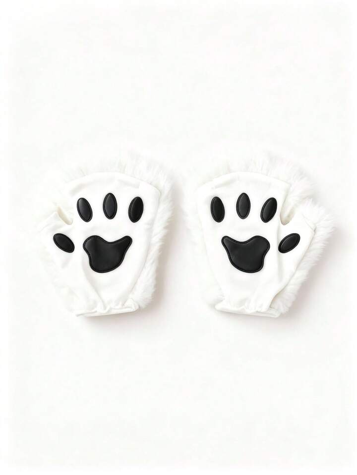 Kawaii 1 par de guantes con dedos medios de peluche con diseño de pata de gato