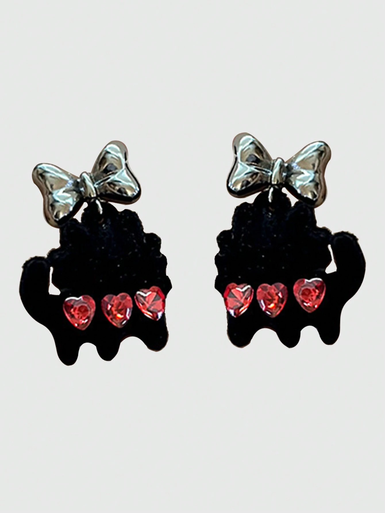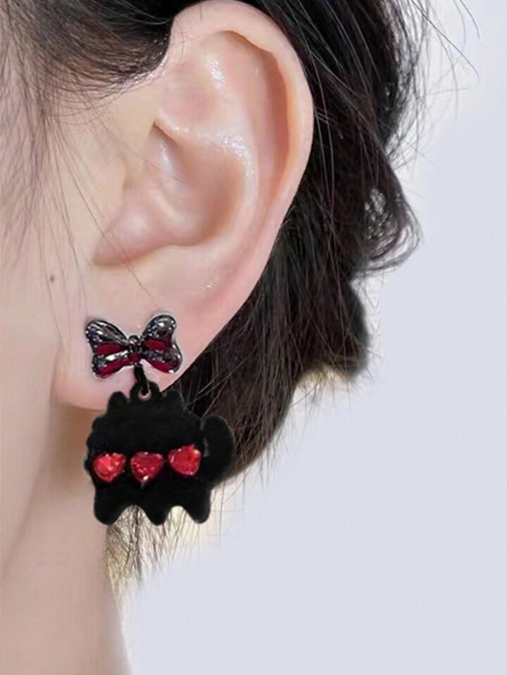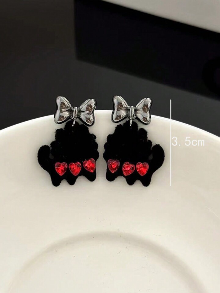 Kawaii 1 par Pendientes de terciopelo negro oreja de gato