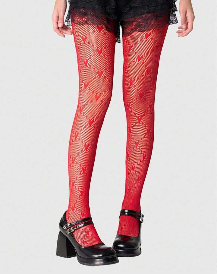Kawaii 1 par de medias de red con diseño de corazón y rombo de color negro para mujer, ideales para el Día de San Valentín