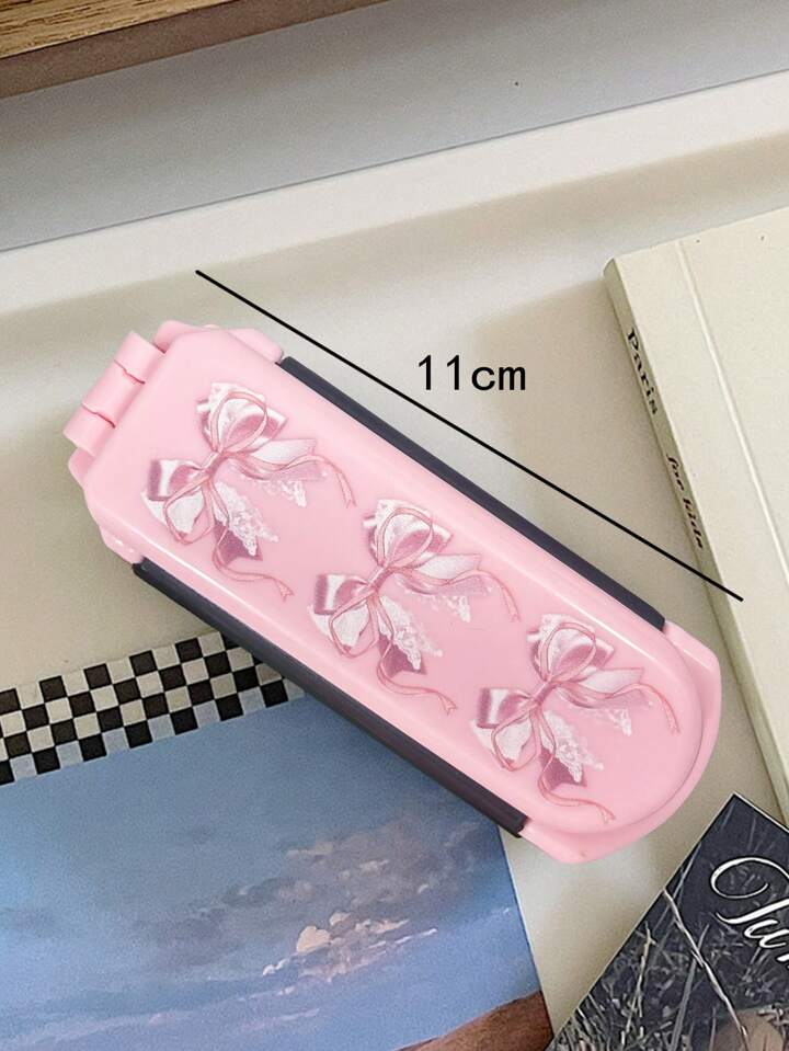 Kawaii 1 pieza Peine plegable con espejo con lazo rosa, cepillo de pelo portátil para volver al colegio