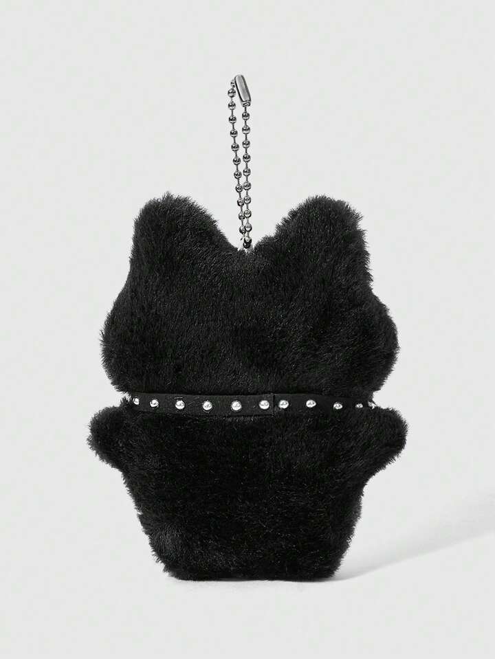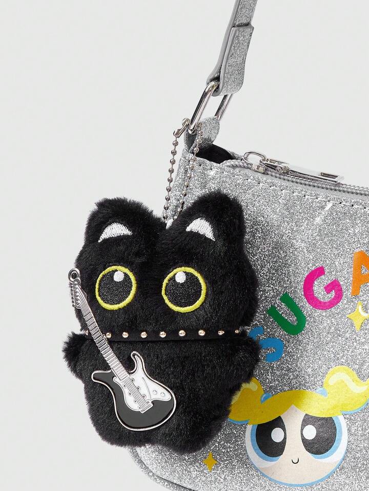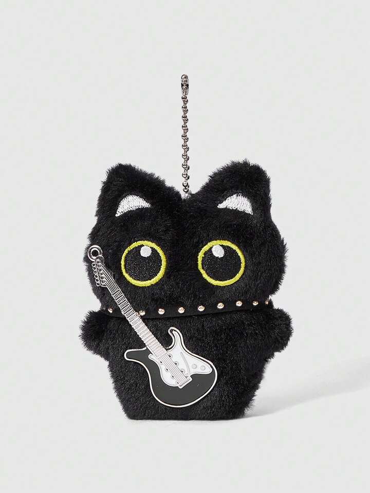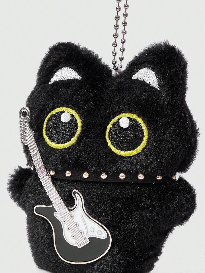 Kawaii 1 pieza Collar de guitarra de peluche estilo punk retro negro, Accesorio multifuncional de gato negro - Llavero, Colgante de bolso, Se puede colgar en bolsos, pantalones, adecuado para uso diario, campus, compras, citas, etc.