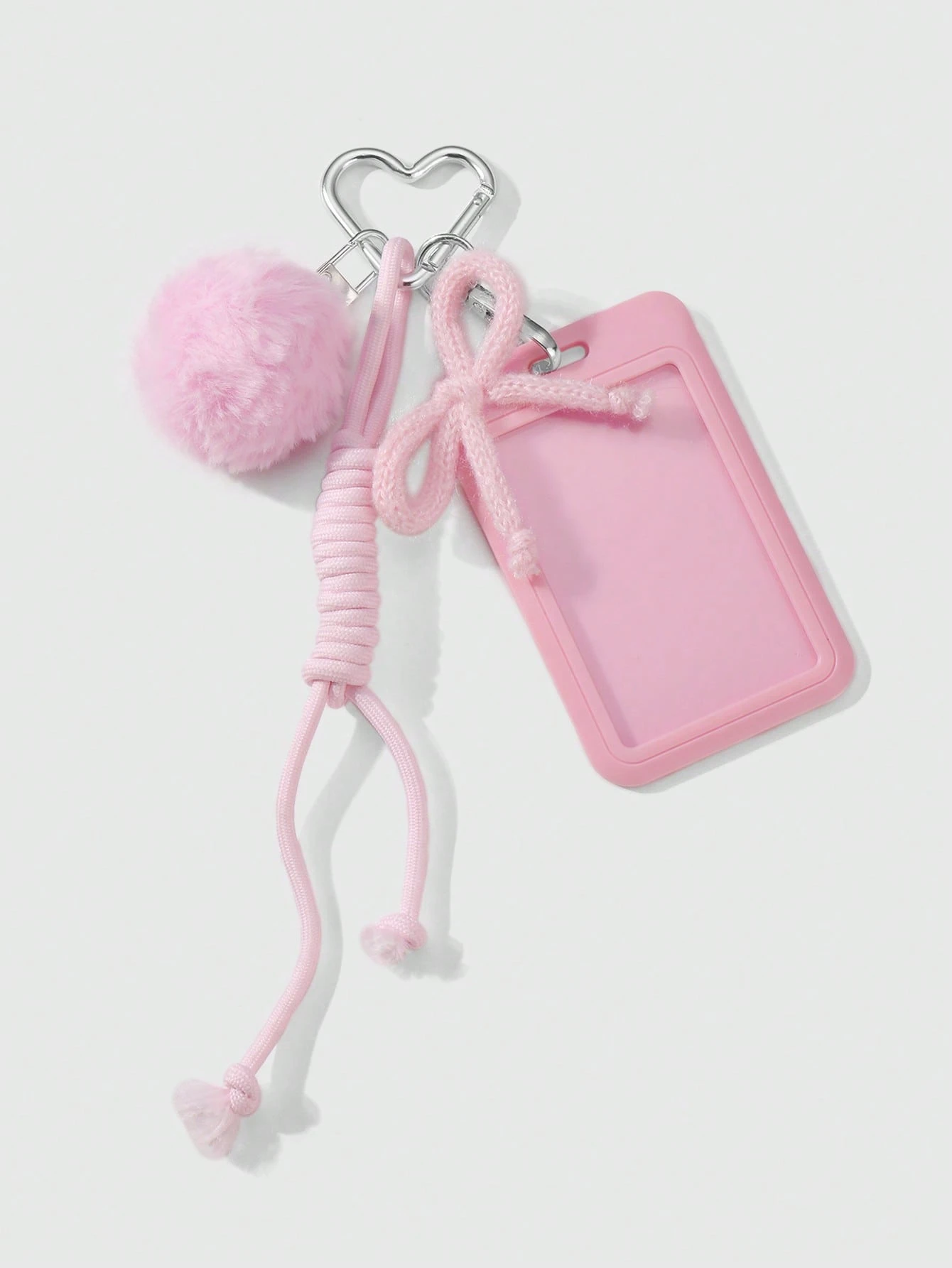 Kawaii 1 pieza Cinta ajustable con portaidentificaciones, moño pompón rosa, cute y de moda, adecuado para empleados, estudiantes y mujeres, regalo ideal para vacaciones