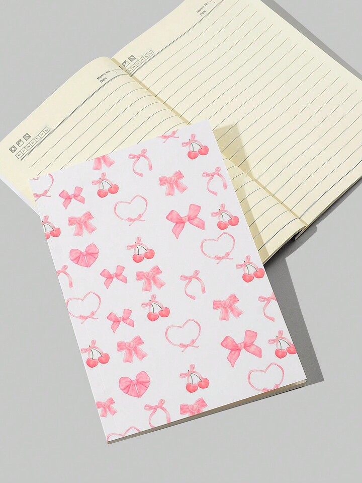Kawaii 1 pieza Lazo lindo, Cuaderno/Planificador A5 de cerezas y corazón