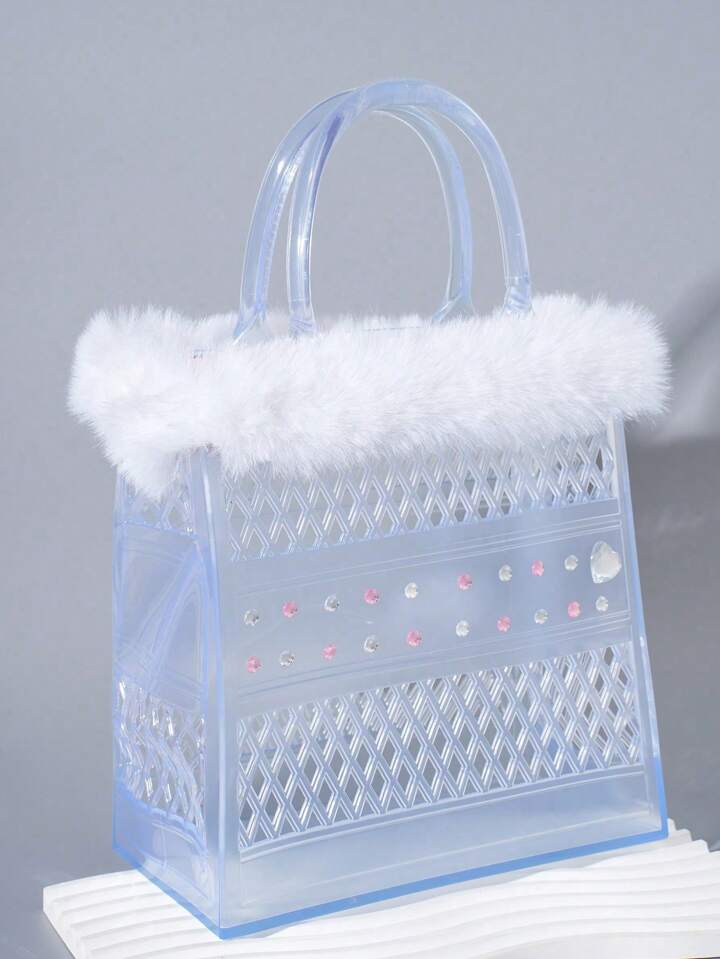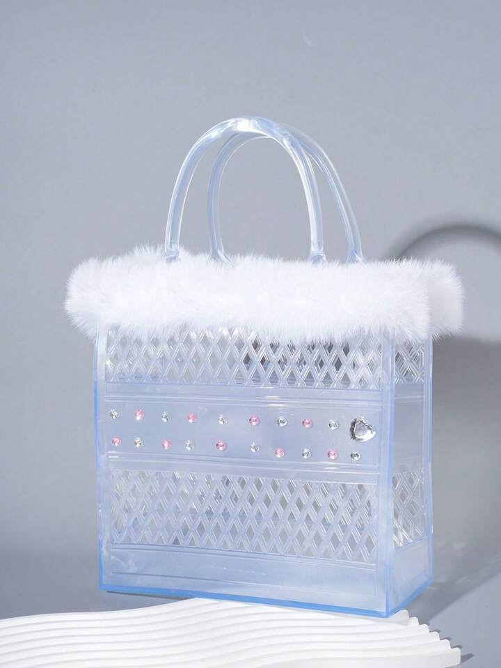 Kawaii 1 pieza Bolso de mano pequeño y de moda personalizado con collar de peluche y transparente de PVC