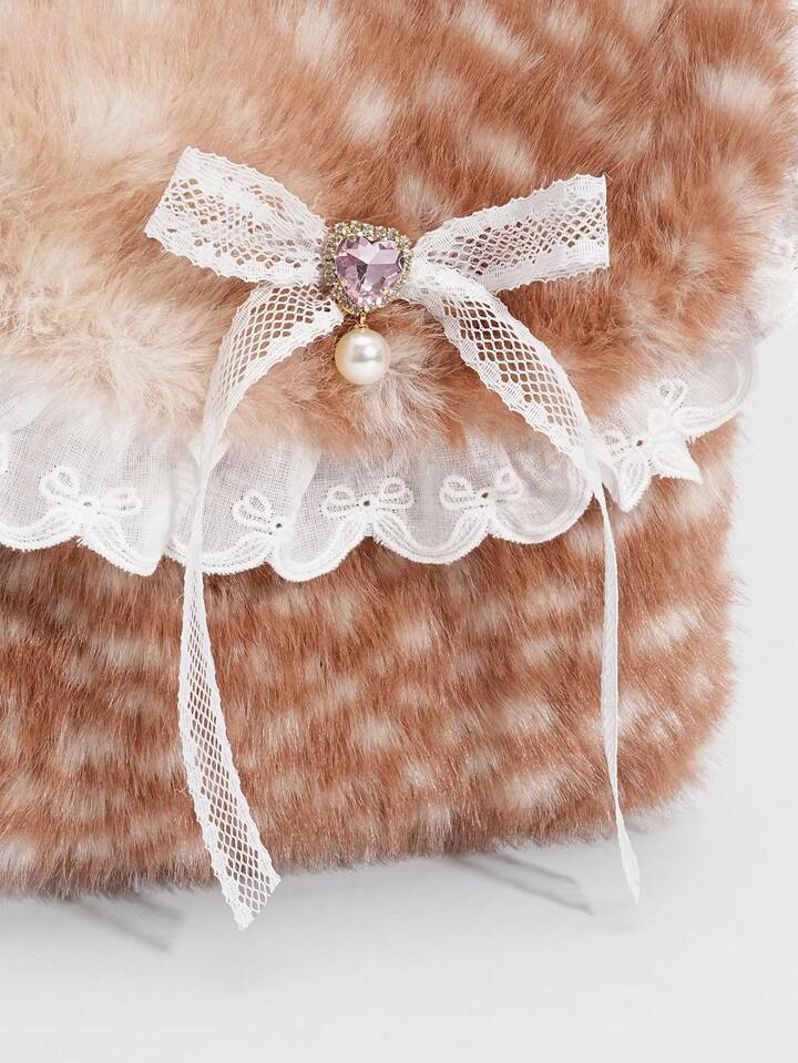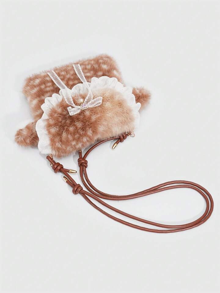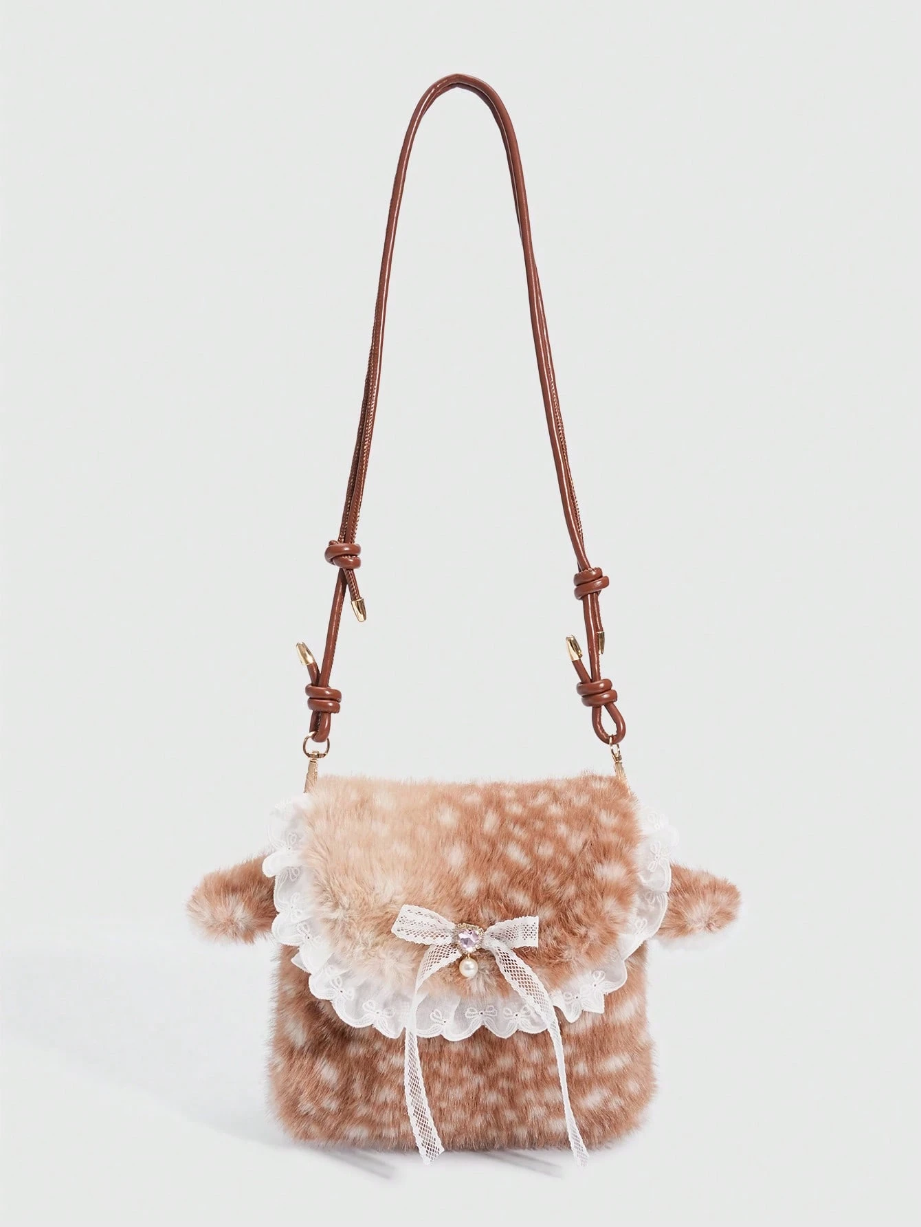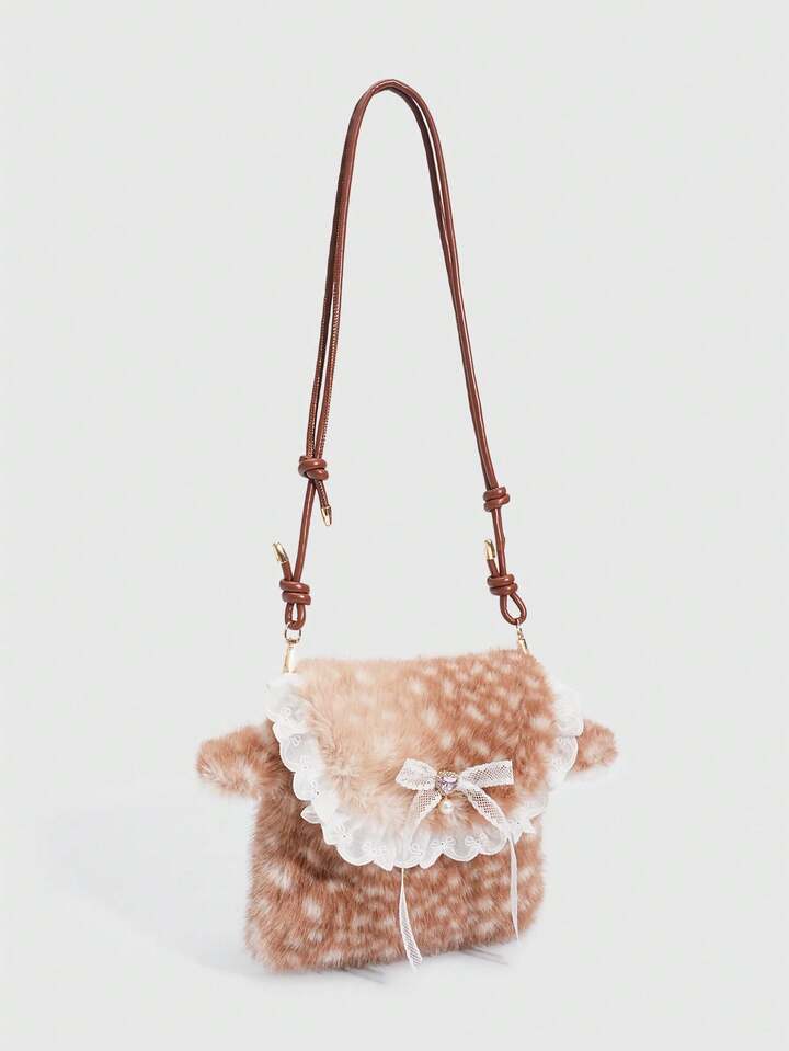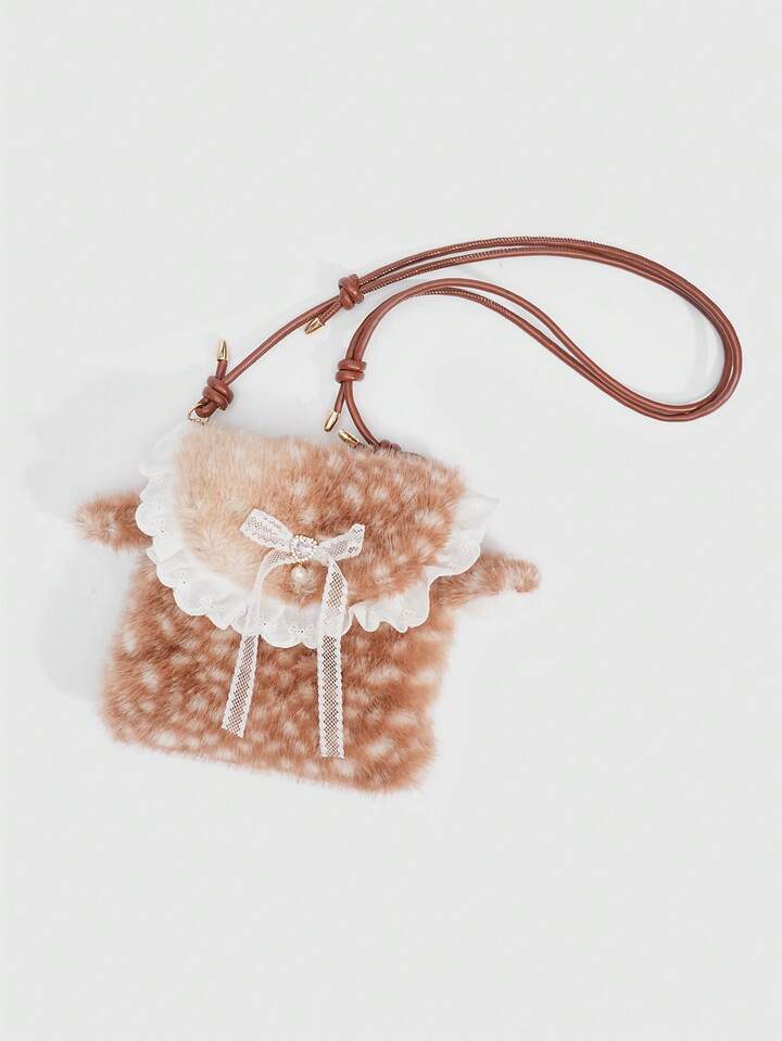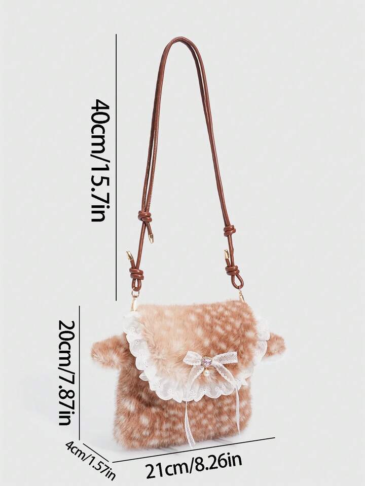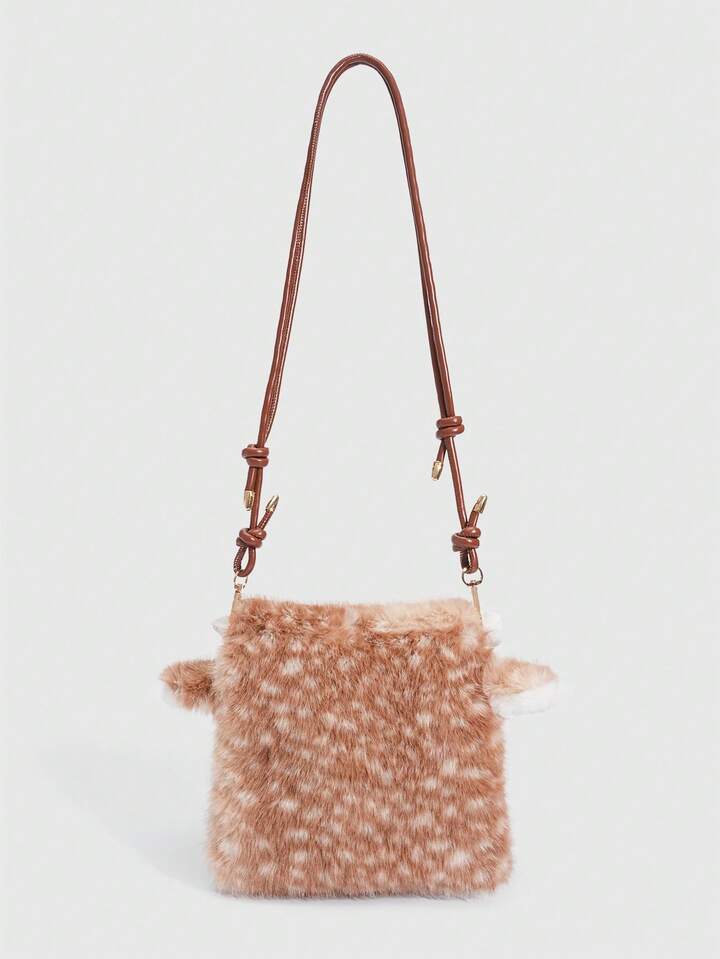 Kawaii 1 pieza Bolso de hombro de peluche lindo para niña, un bolso de hombro de peluche con forma de pequeño ciervo para otoño e invierno, un bolso con forma de ciervo para estudiante niña para otoño, invierno y Navidad