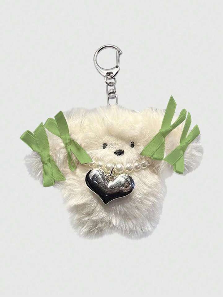 Kawaii 1 pieza Decoración colgante de perrito de dibujos animados con cinta y perla, estilo coreano lindo para mochila, bolsa, llavero