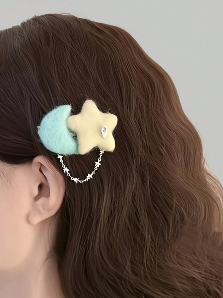 Kawaii 1 Pieza Lindo Clip De Cabello De Cadena De Estrella Y Luna