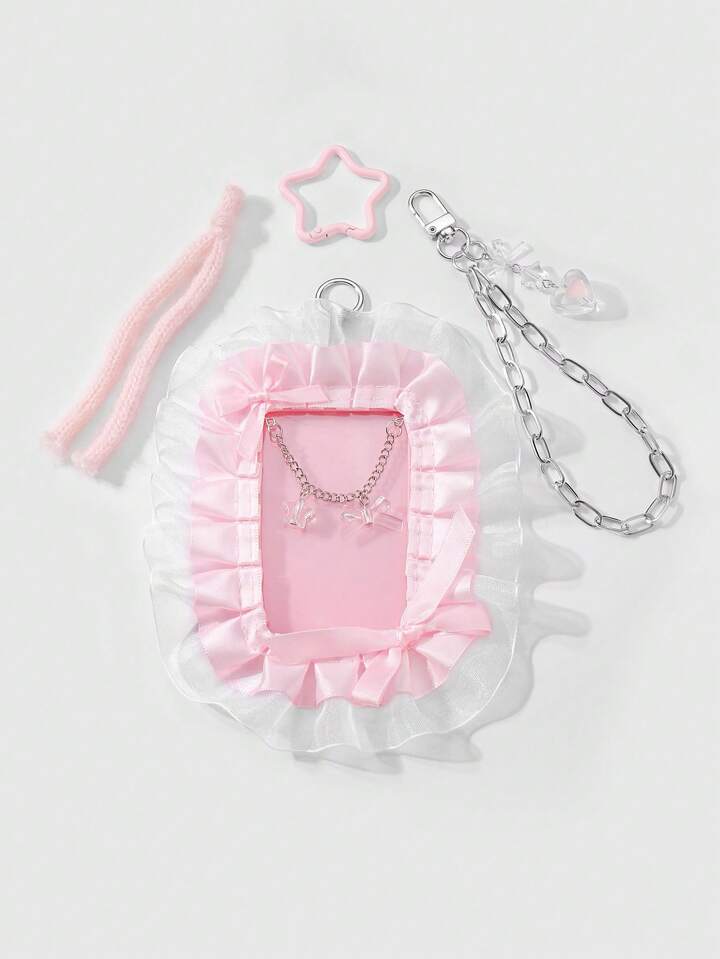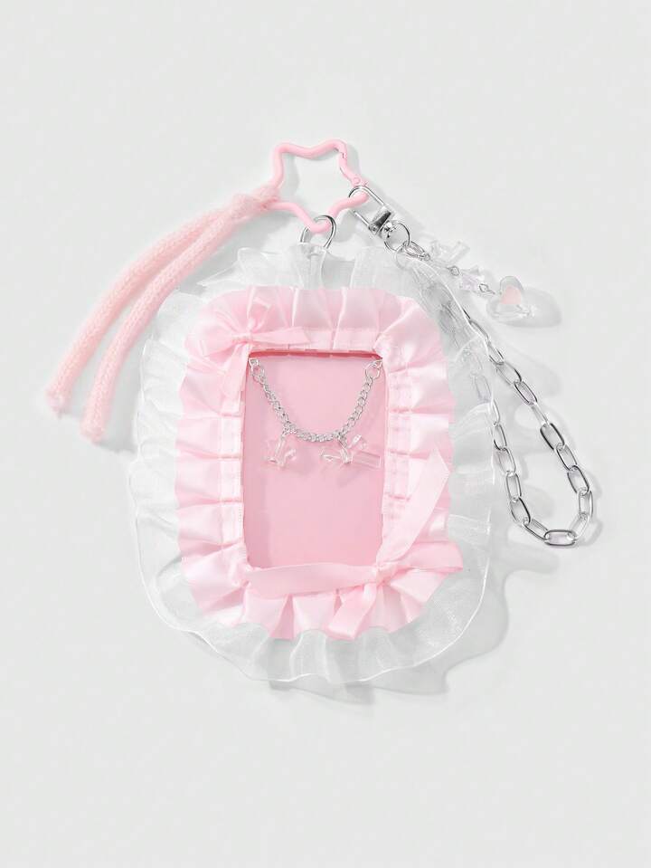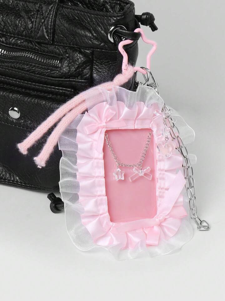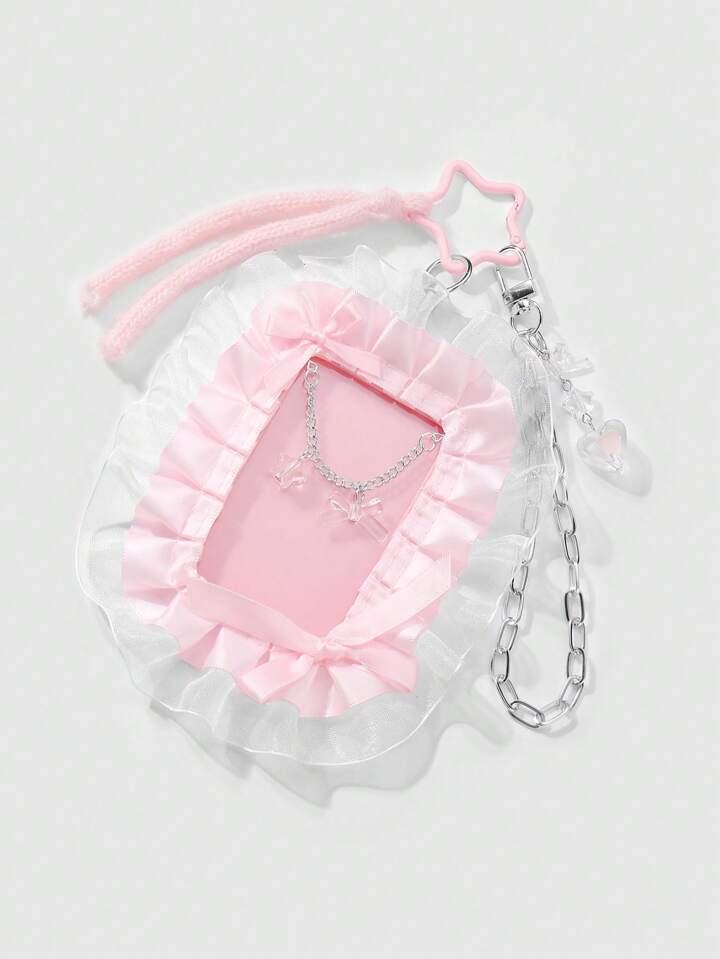 Kawaii 1 pieza Elegante llavero/colgante de bolso con cadena plateada para niña, con corazón aceitoso, lazo y decoración de encaje, un regalo versátil y de moda adecuado para mujeres de oficina, estudiantes y uso diario