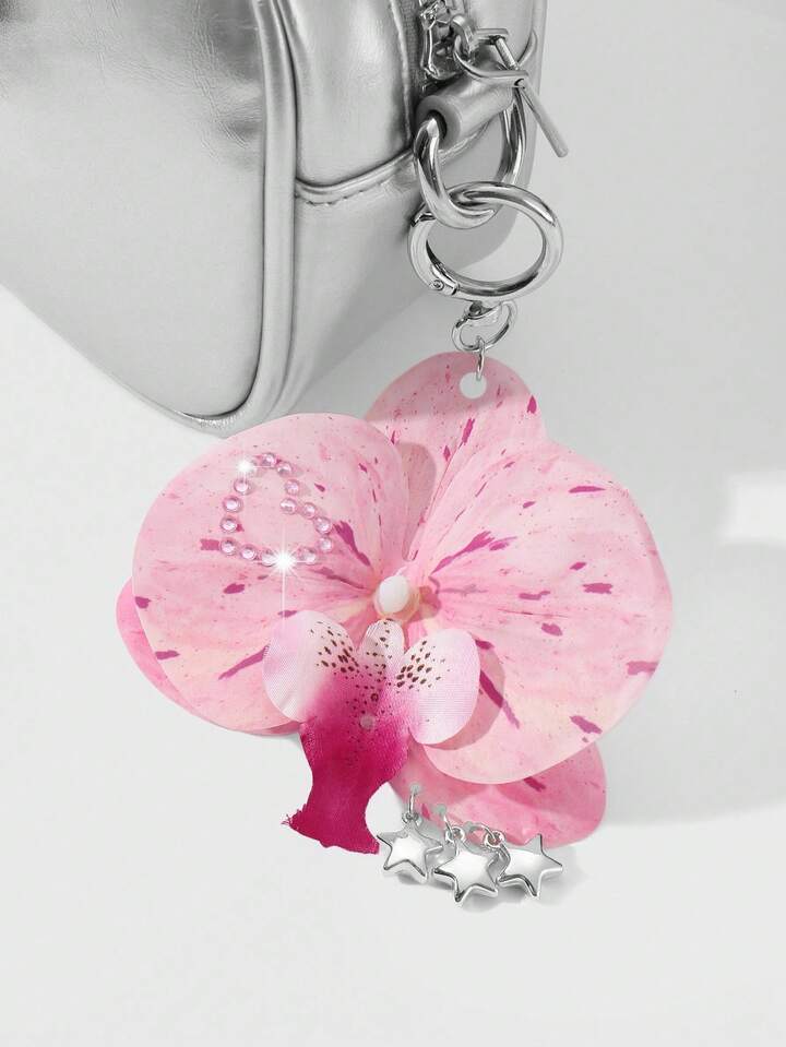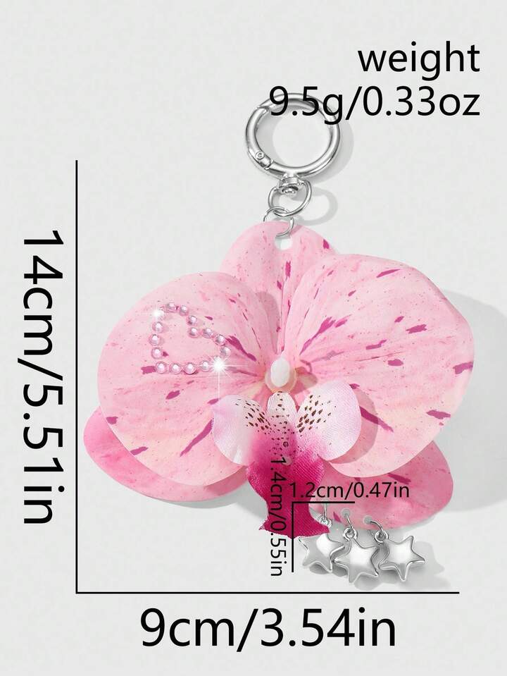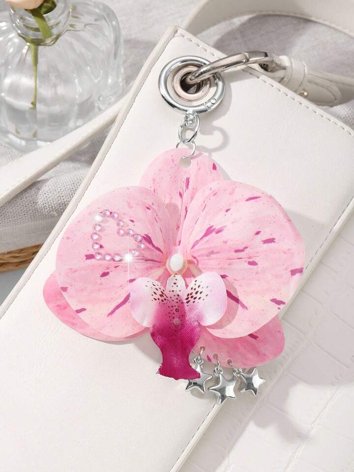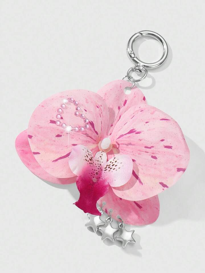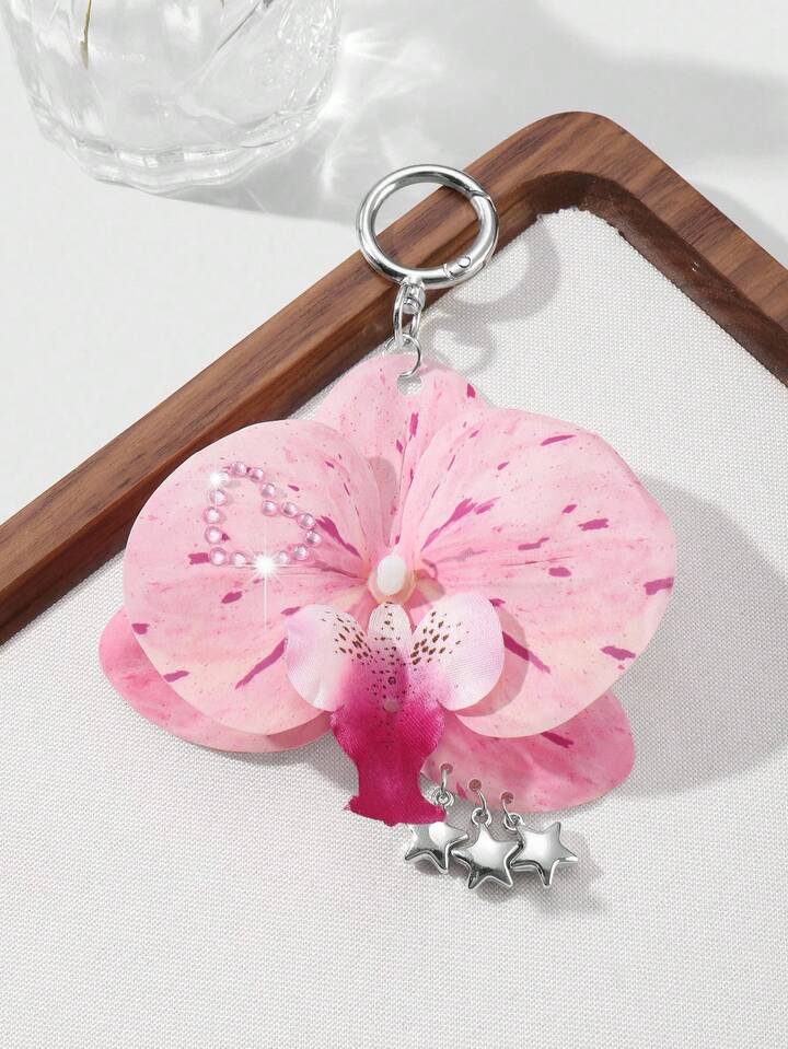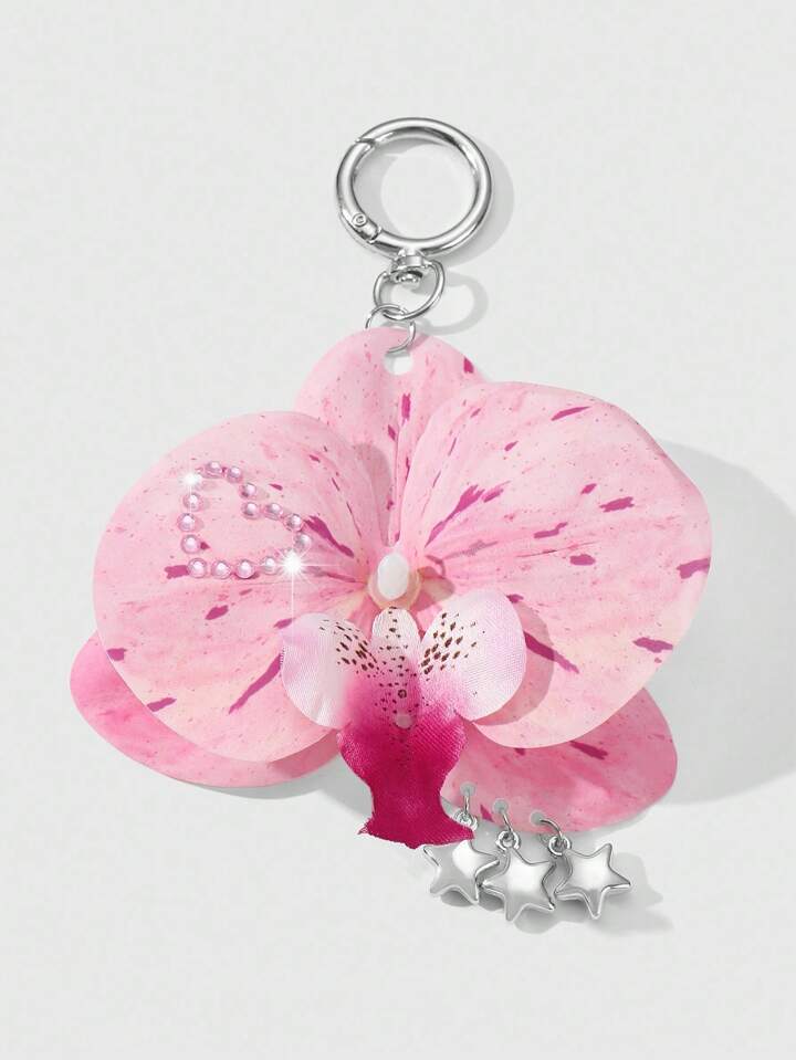 Kawaii 1 pieza Elegante y minimalista, versátil llavero/colgante de bolso con dije de mariposa, orquídea, corazón o estrella de acrílico y cristal, accesorio de moda como regalo para mujeres