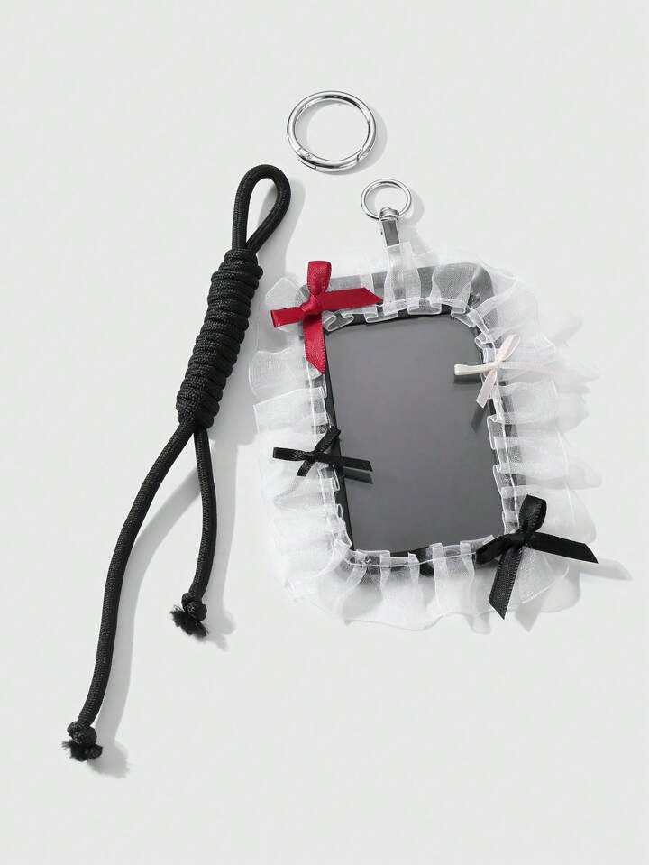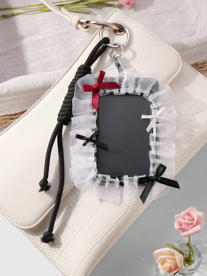 Kawaii 1 pieza Soporte para tarjeta de identificación con lazo ajustable de cinta de encaje de malla blanco de estilo gótico cute y de moda, adecuado para trabajadores de oficina, estudiantes, uso diario, regalo de vacaciones
