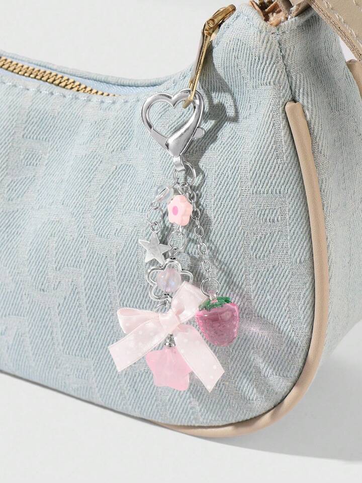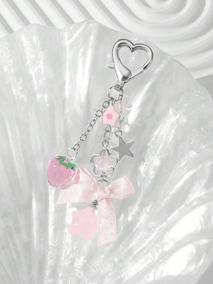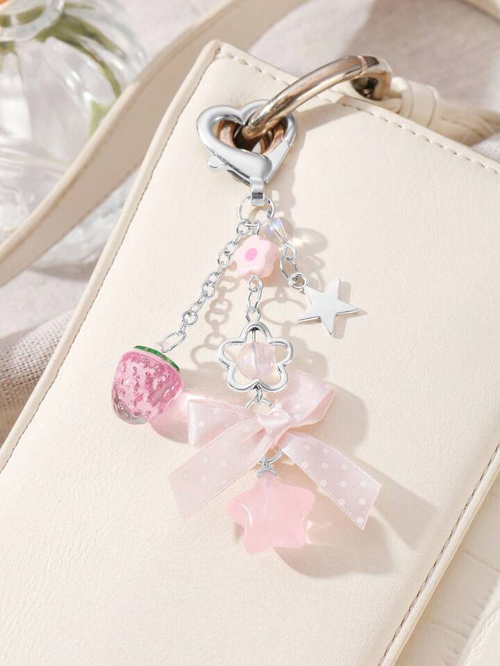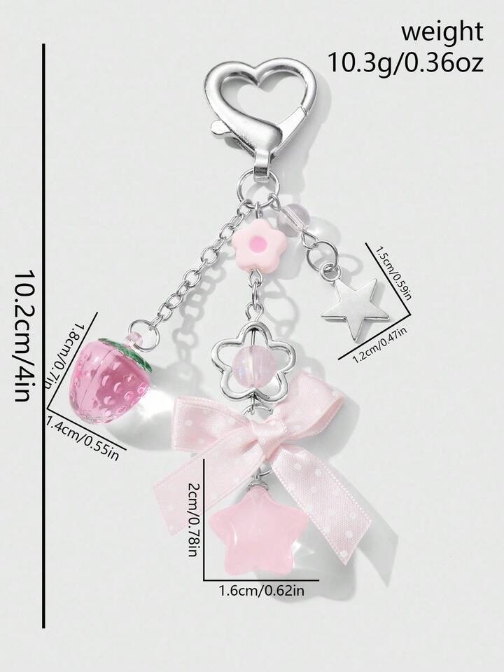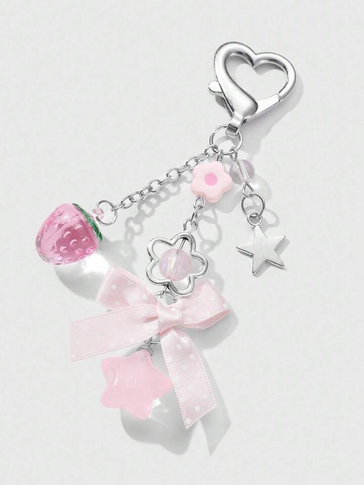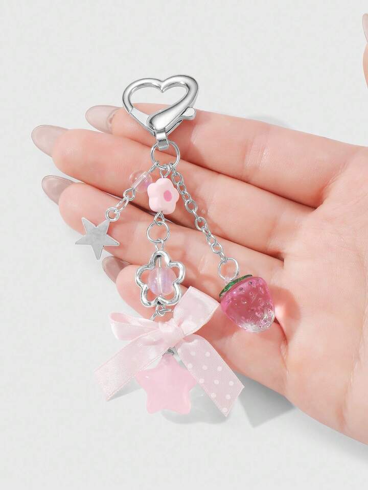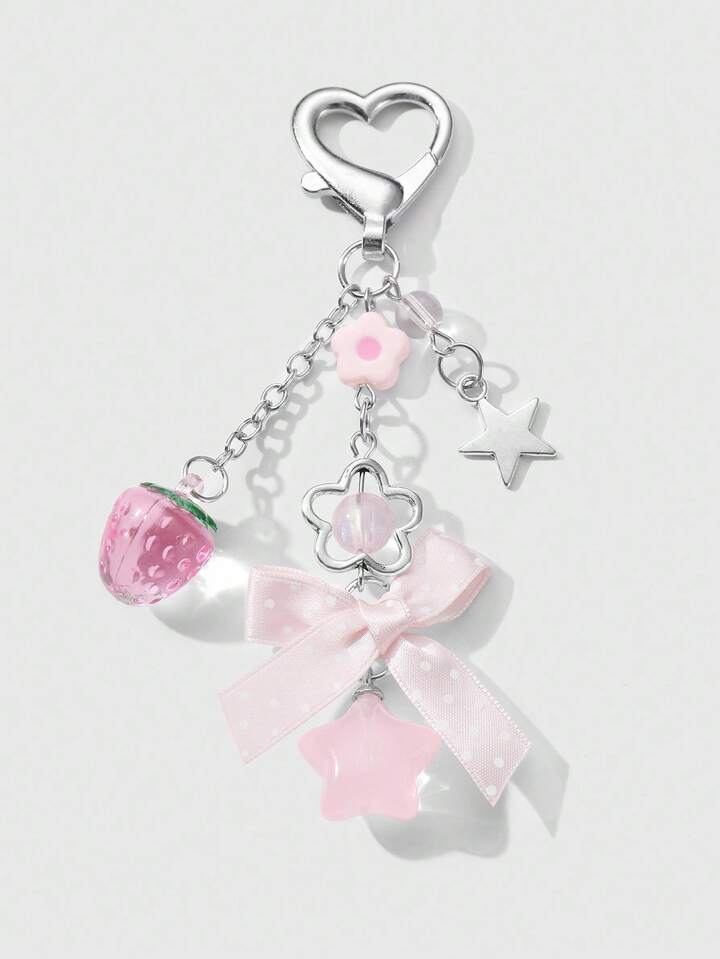 Kawaii 1 pieza Cadena de plata de alta calidad, versátil y elegante con colgante de flor de resina, fresa, lunares y lazo en forma de estrella, accesorio DIY para llavero o bolso, adecuado para uso diario de mujeres/niñas, regalo para ocasiones festivas