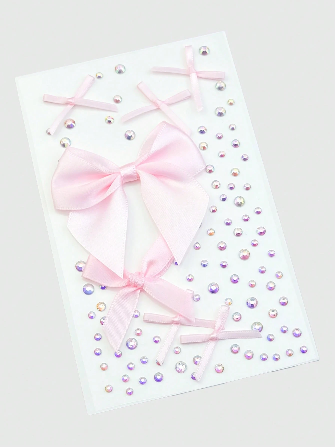 Kawaii 1 pieza Pegatina de lazo con rhinestones con efecto brillante de moda