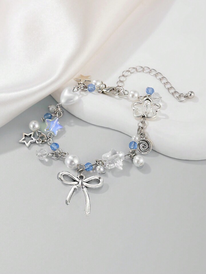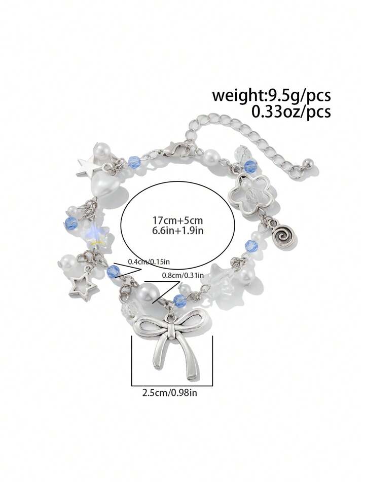 Kawaii 1 pieza Pulsera con colgante de cadena con cristal, perla, estrella, flor y lazo, elegante y sencilla, regalo para San Valentín, mamá, madre, Día de la Madre