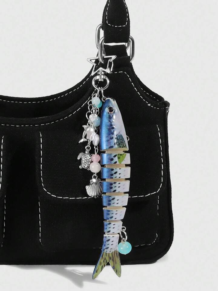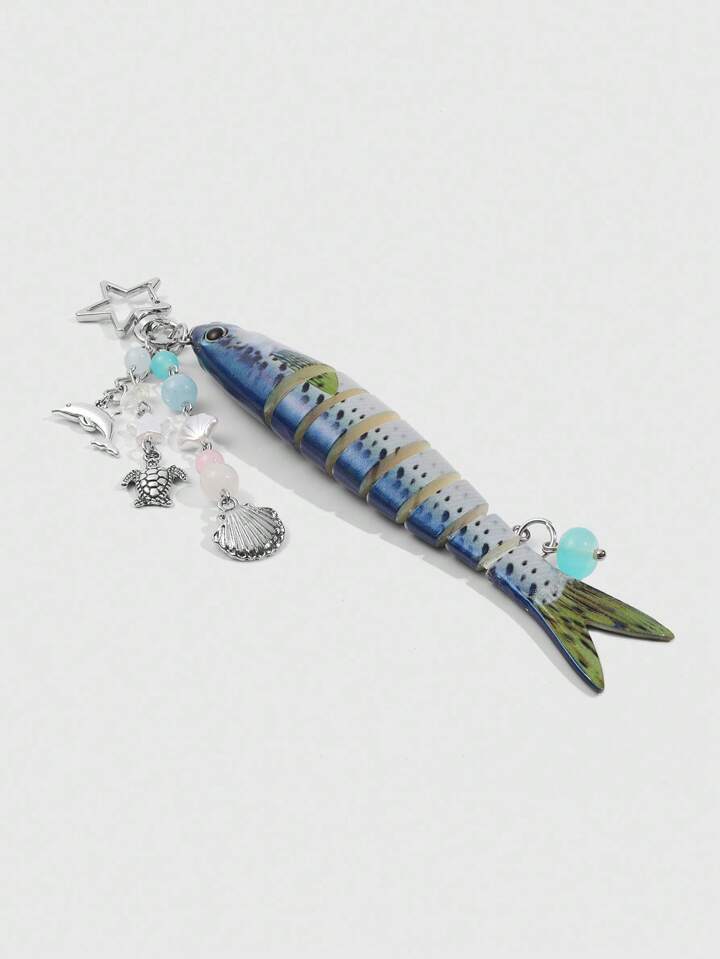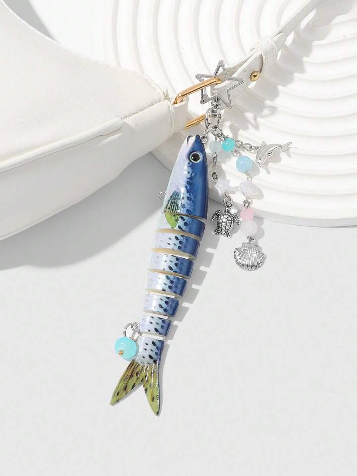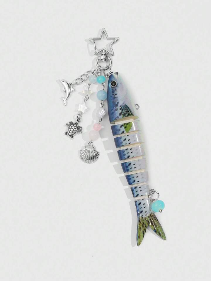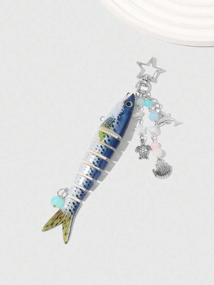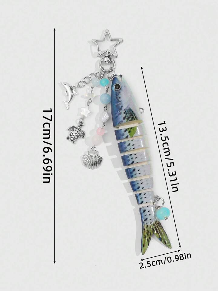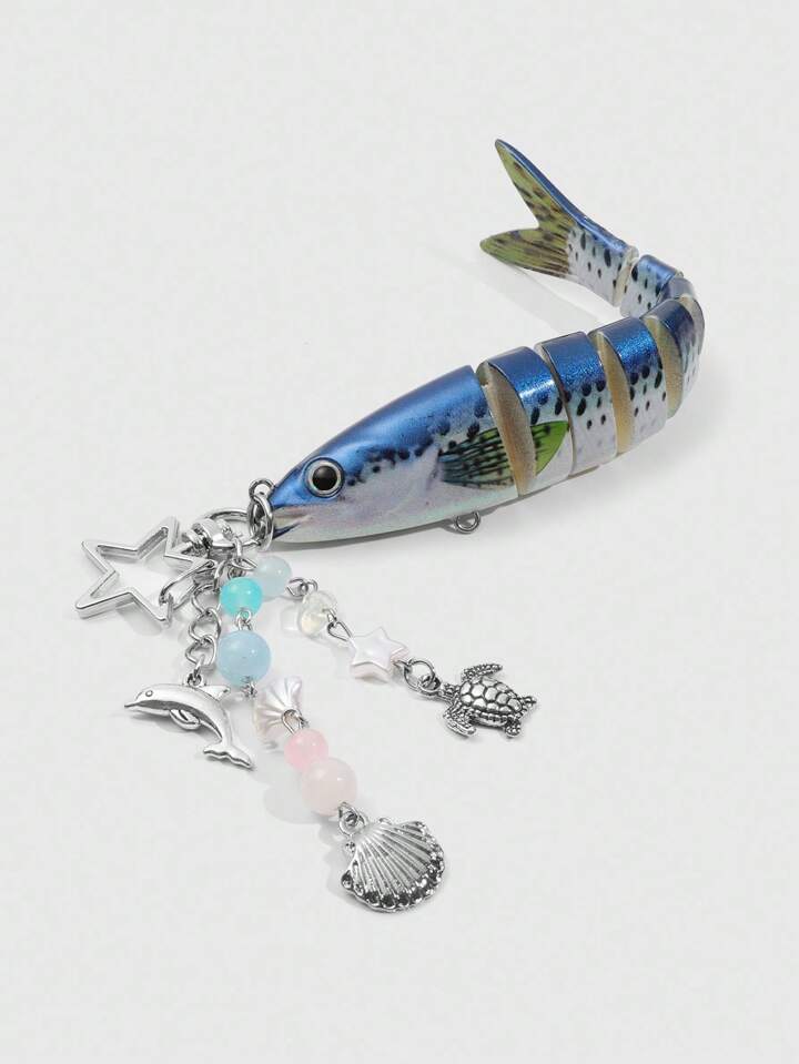 Kawaii 1 pieza Llavero de estilo playero hecho a mano con diseño creativo de pez de océano, cebo de pesca realista con múltiples ganchos