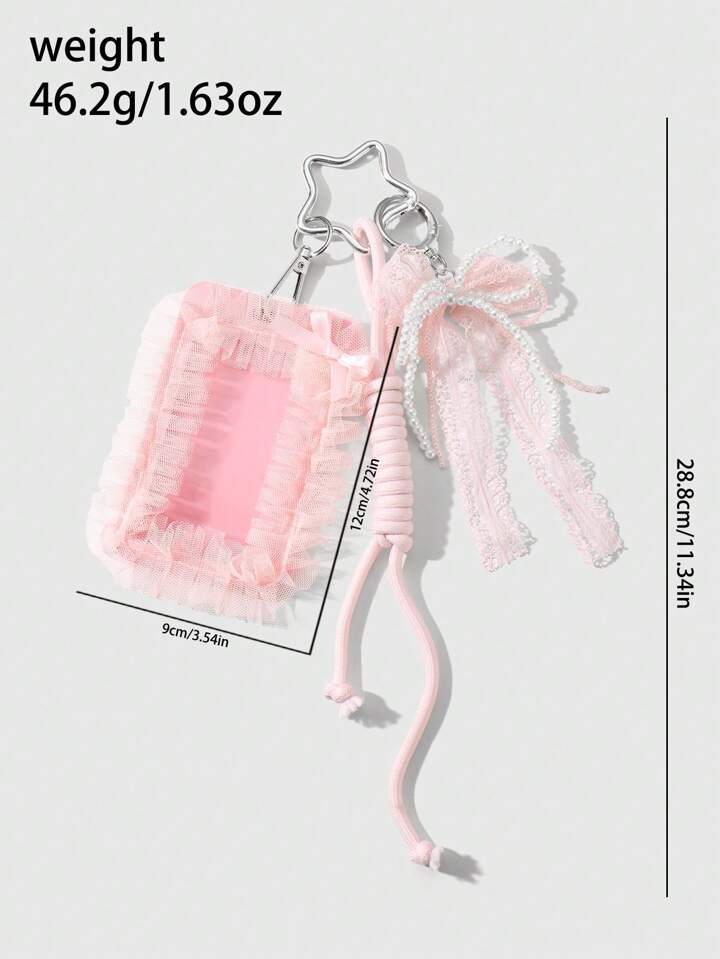 Kawaii 1 pieza de Cordón de identificación hecho a mano con cuentas, lazo de cinta de malla de perlas y cristales falsos, portador de tarjeta trenzado ajustable y versátil, llavero y adorno de bolso DIY, adecuado para trabajadores de oficina, estudiantes, uso diario y regalo de vacaciones