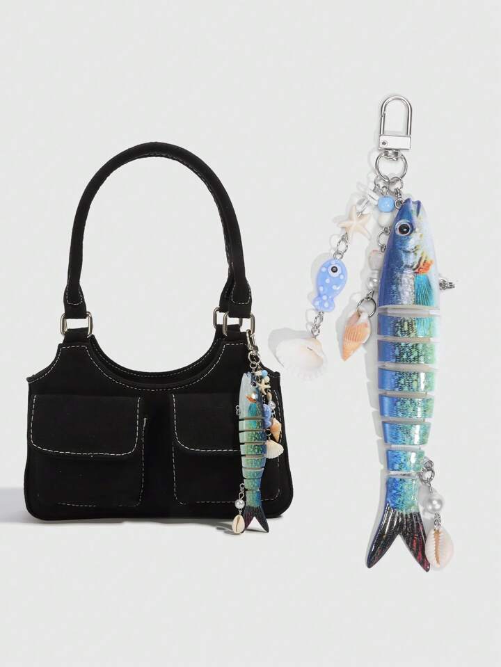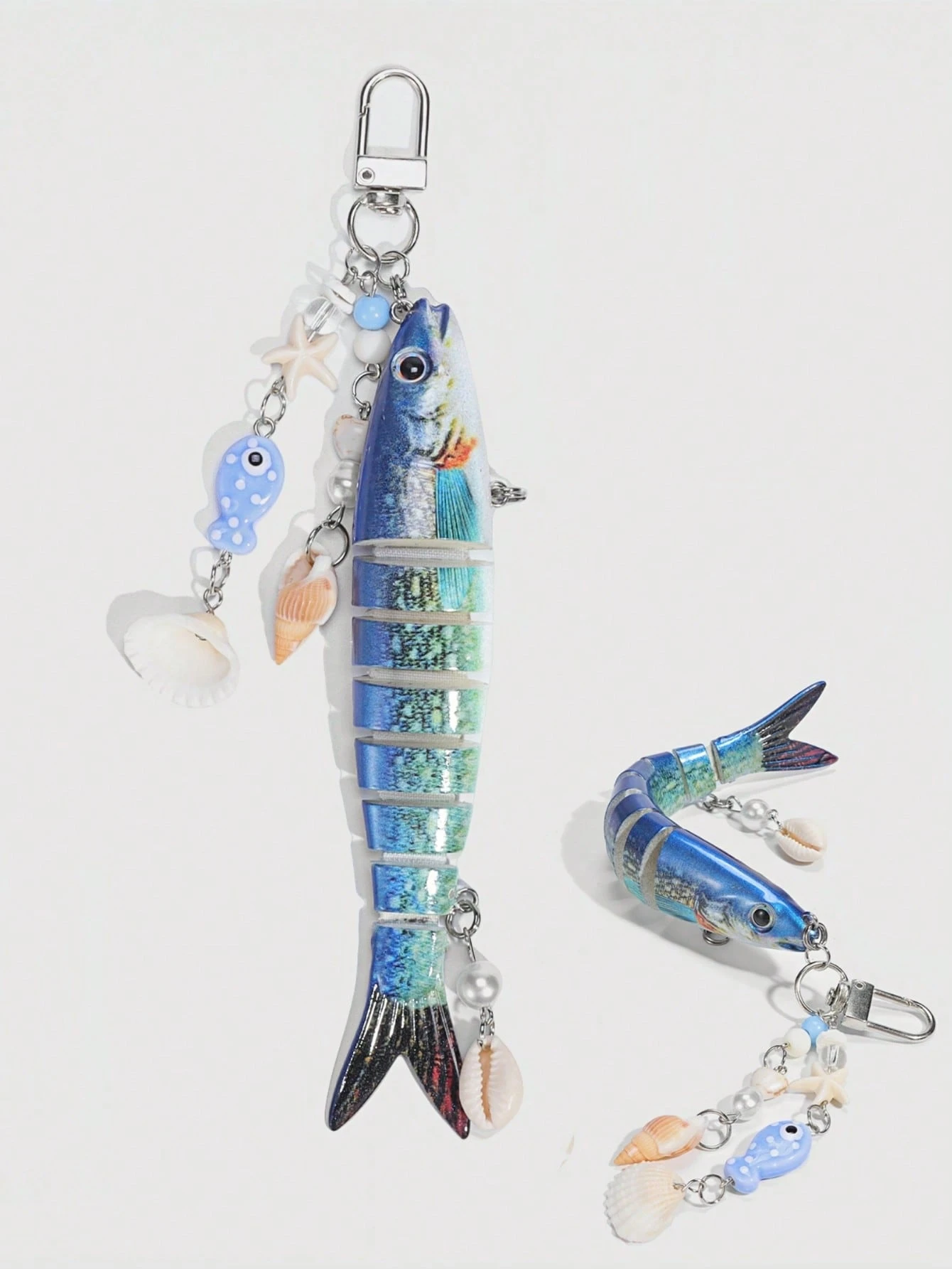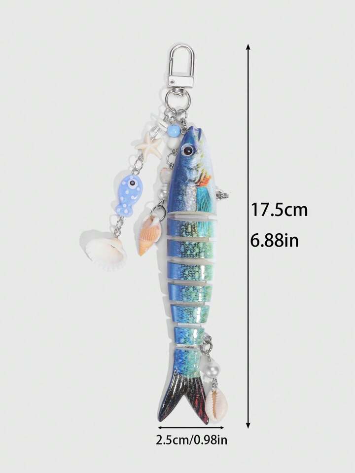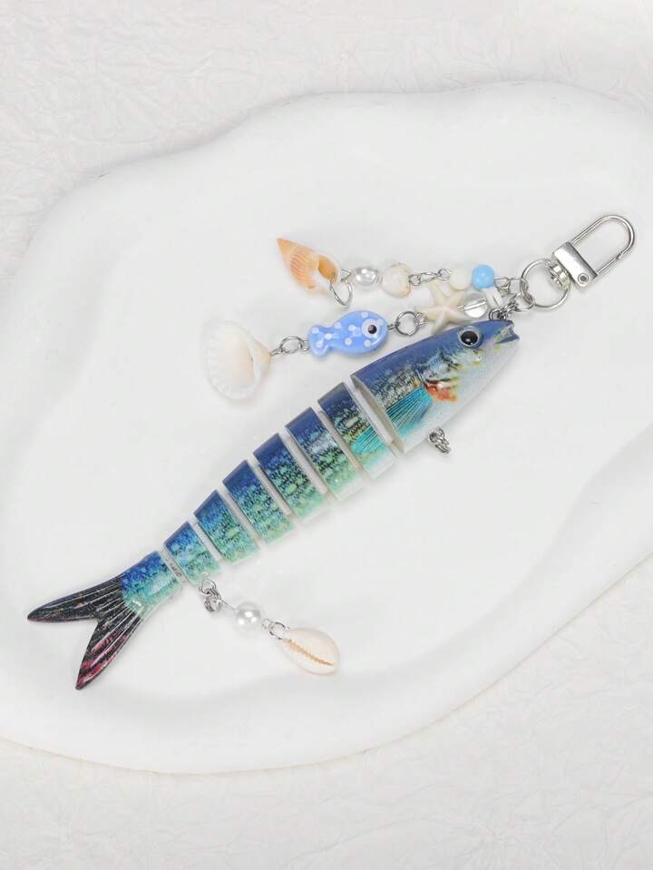 Kawaii 1 pieza Llavero de pez hecho a mano con concha marina, señuelo de pesca biónico, colgante multicomponente con anzuelo en estilo de vacaciones/océano