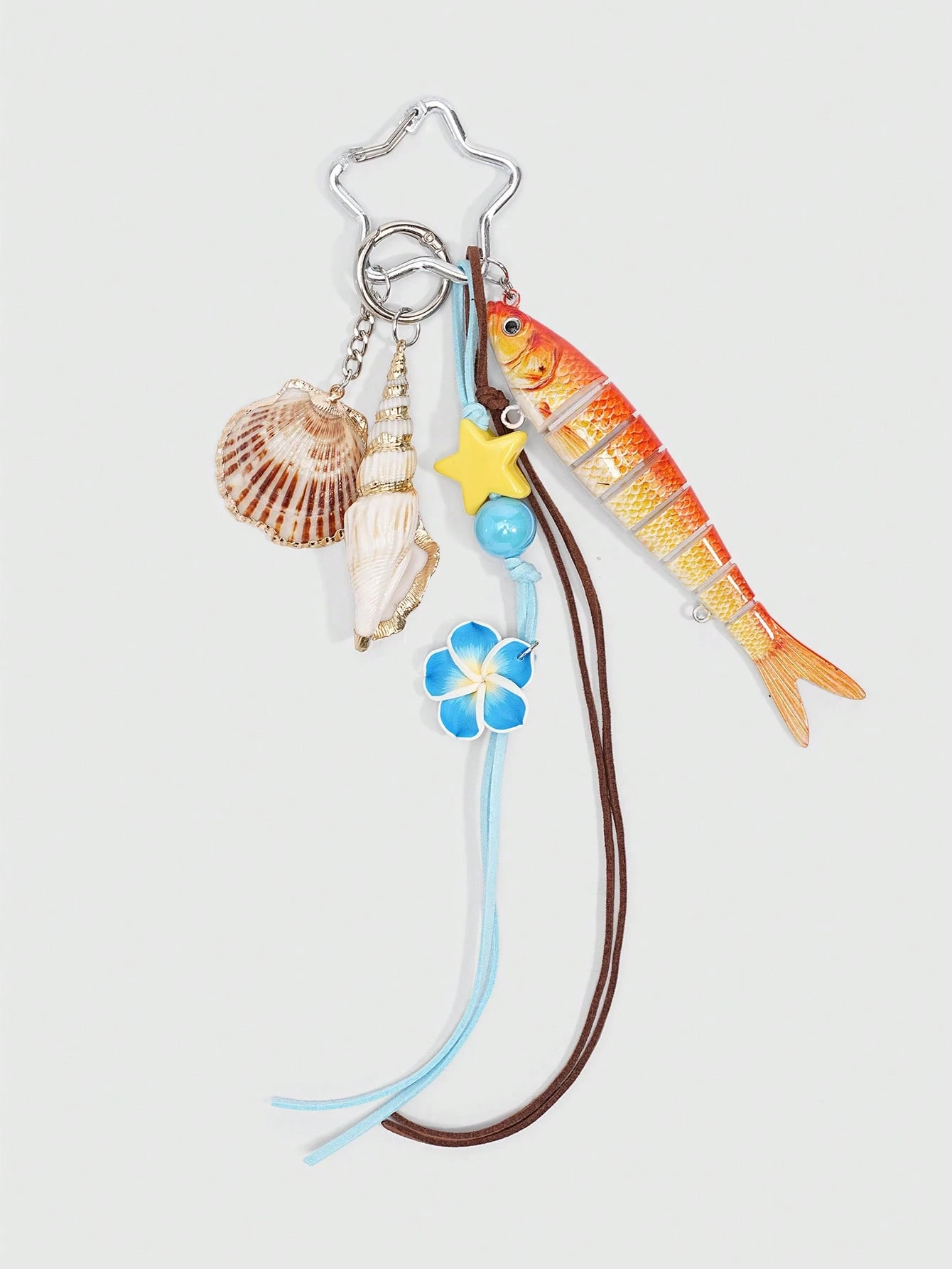 Kawaii 1 pieza Llavero de pez hecho a mano con concha marina, señuelo de pesca biónico, colgante de anzuelo de pez de varias secciones en estilo de vacaciones/océano