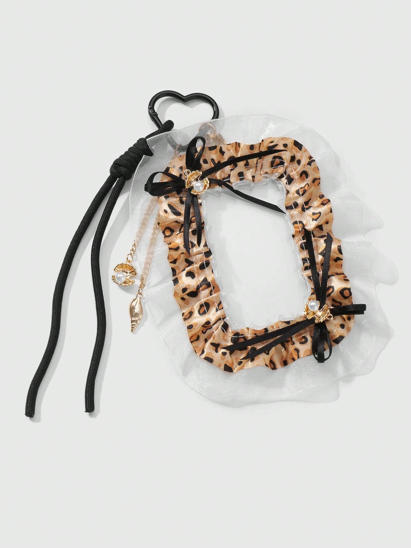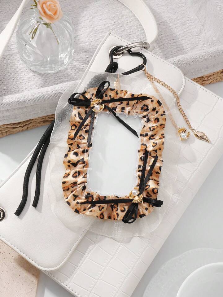 Kawaii 1 pieza Elegante y vintage Moda única Cinta de encaje con estampado de leopardo de alta calidad, decoración de perlas y conchas, Soporte para tarjetas/identificación con cordón, Adecuado para trabajadores de oficina, estudiantes, uso diario, regalo de vacaciones