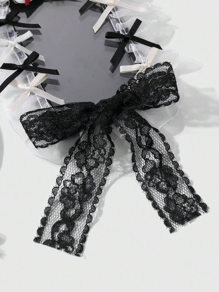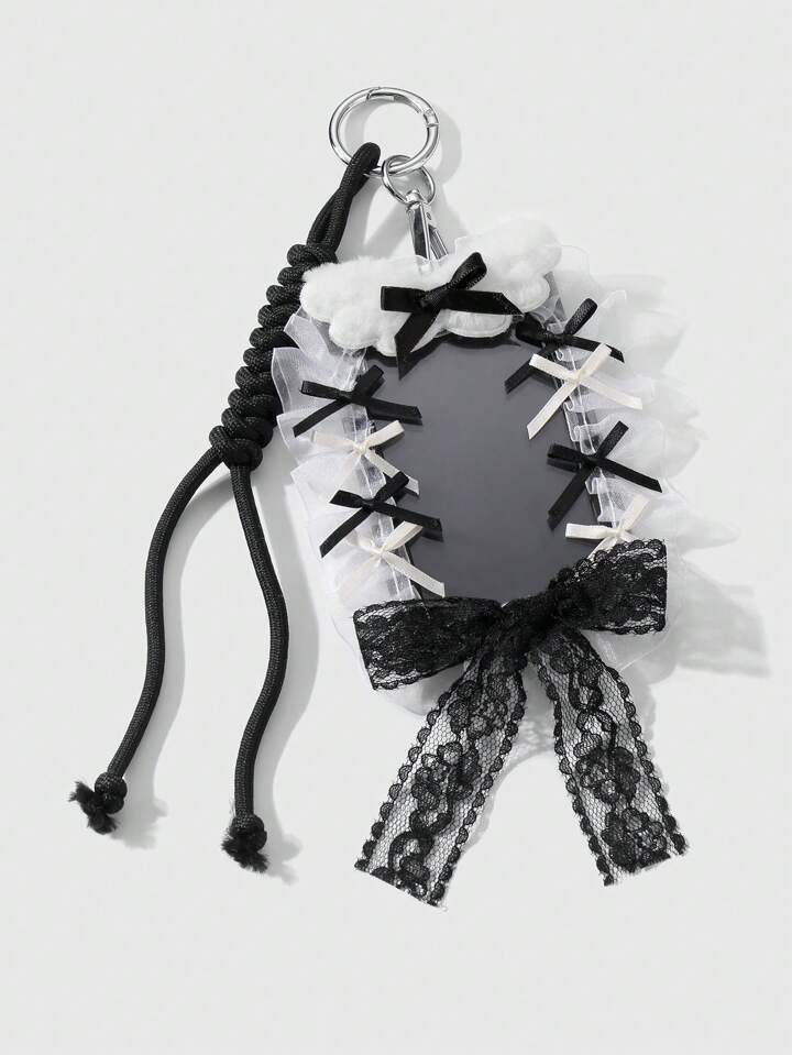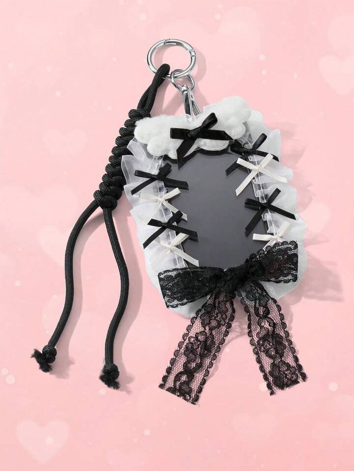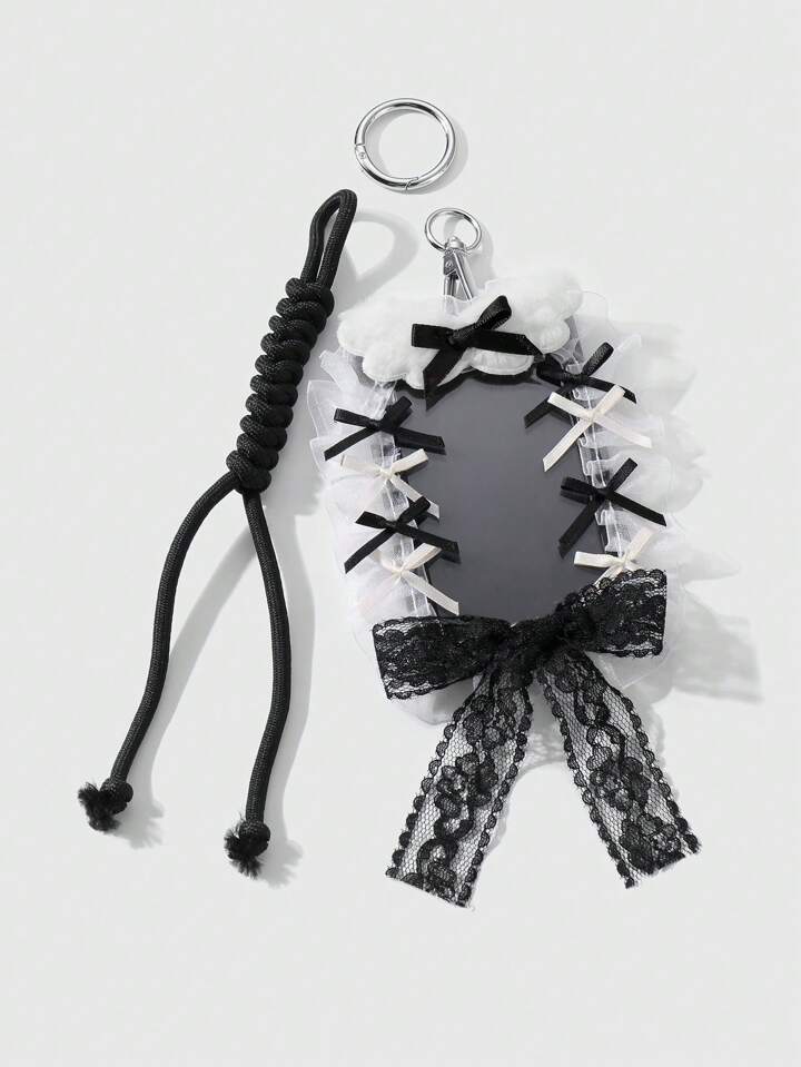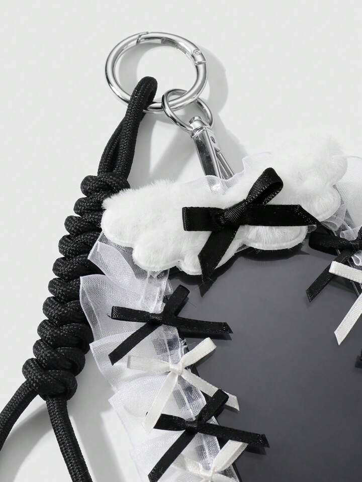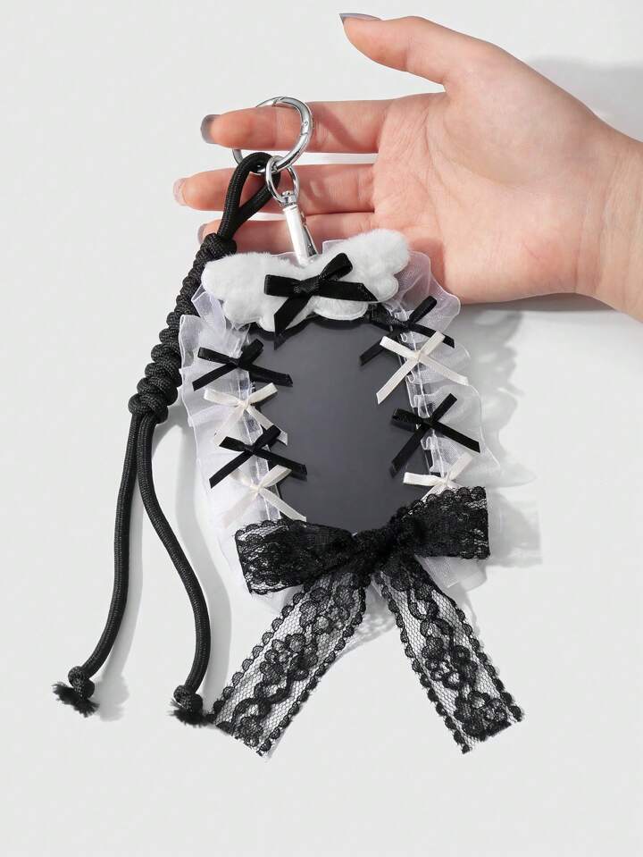 Kawaii 1 pieza Estilo Ins Moda Gótica Tema Oscuro Personalizado: Tarjeta de Alas de Ángel de Encaje Floral de Malla Blanca con Lazo, Portatarjetas de Cordón Trenzado Negro para Credencial, Llavero, Colgante de Bolsa, Adecuado para Trabajador de Oficina, Estudiante, Uso Diario, Regalo de Vacaciones