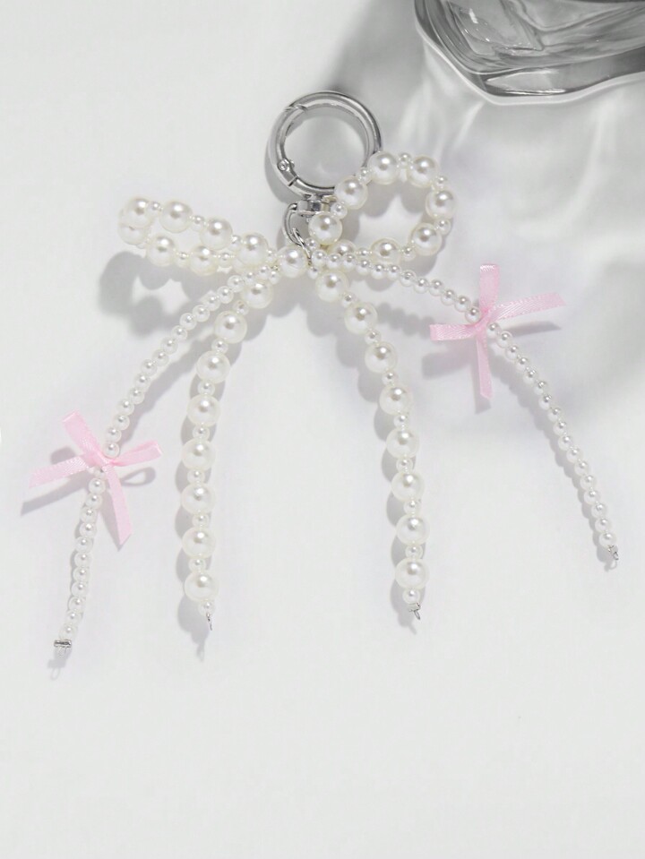 Kawaii 1 pieza Llavero con moño rosa y llavero con moño de perla al estilo coreano, regalo de vacaciones