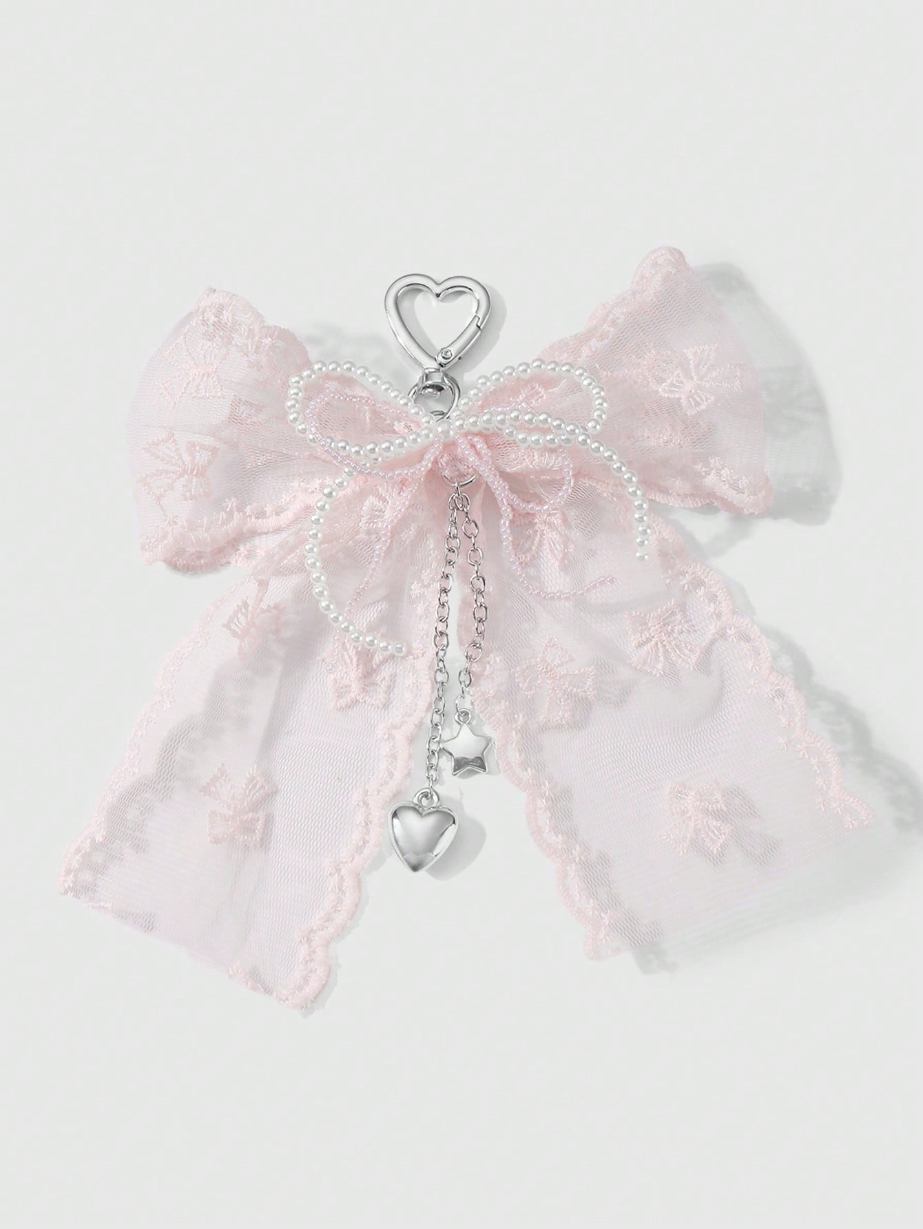Kawaii 1 pieza Estilo coreano, dulce y delicado, versátil y simple, collar colgante de alta calidad hecho a mano con perla blanca falsa, cristal, cuentas de red de hilo y lazo en forma de estrella y corazón, adecuado para mujeres, uso diario y regalo de fiesta